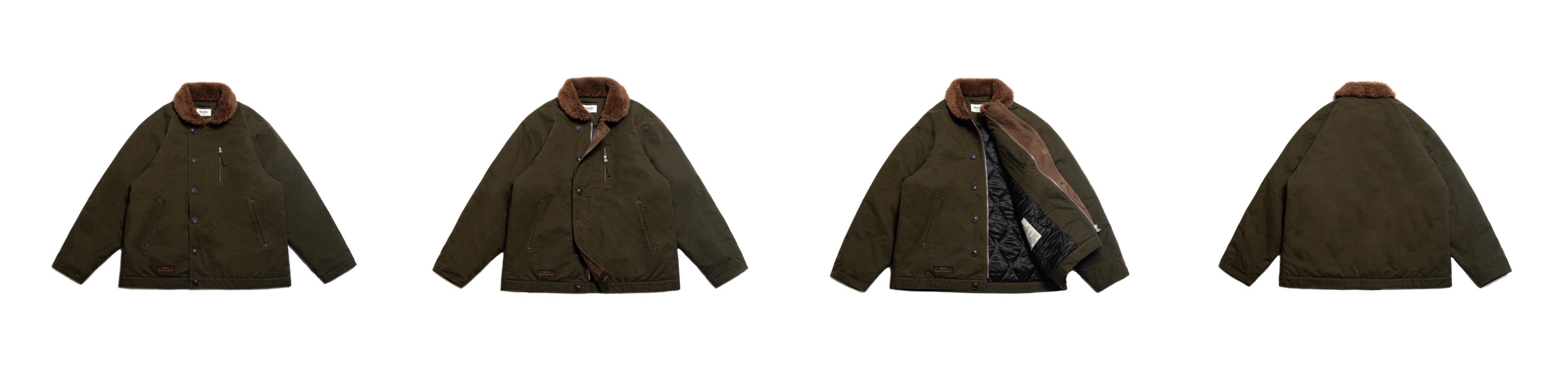 2022 首款禦寒鋪棉單品 N1 DECK JACKET 全新發售,取材自經典的海軍甲板外套,精選具有高強度、高密度、高抗風性的重磅面料製作,內裡搭配葫蘆壓紋的 3M™ Thinsulate™ 新雪麗™ 保溫棉,強化 N1外套防風、保暖、實用的機能性特色,並重新調版型細節,讓經典外型帶有寬鬆輪廓,更合適融入現代的穿搭風格。