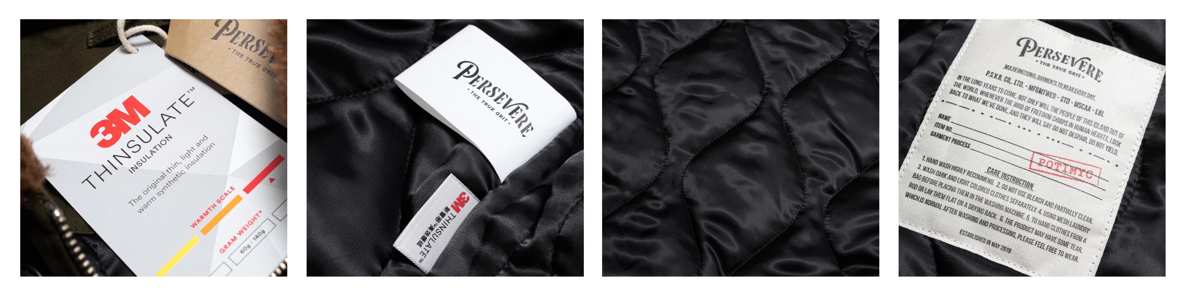 ● 特選 3M™ Thinsulate™ 新雪麗™ 保溫棉,擁有高效能的保溫效果,輕薄不厚重,有效留住身體熱能,且有良好透氣性。