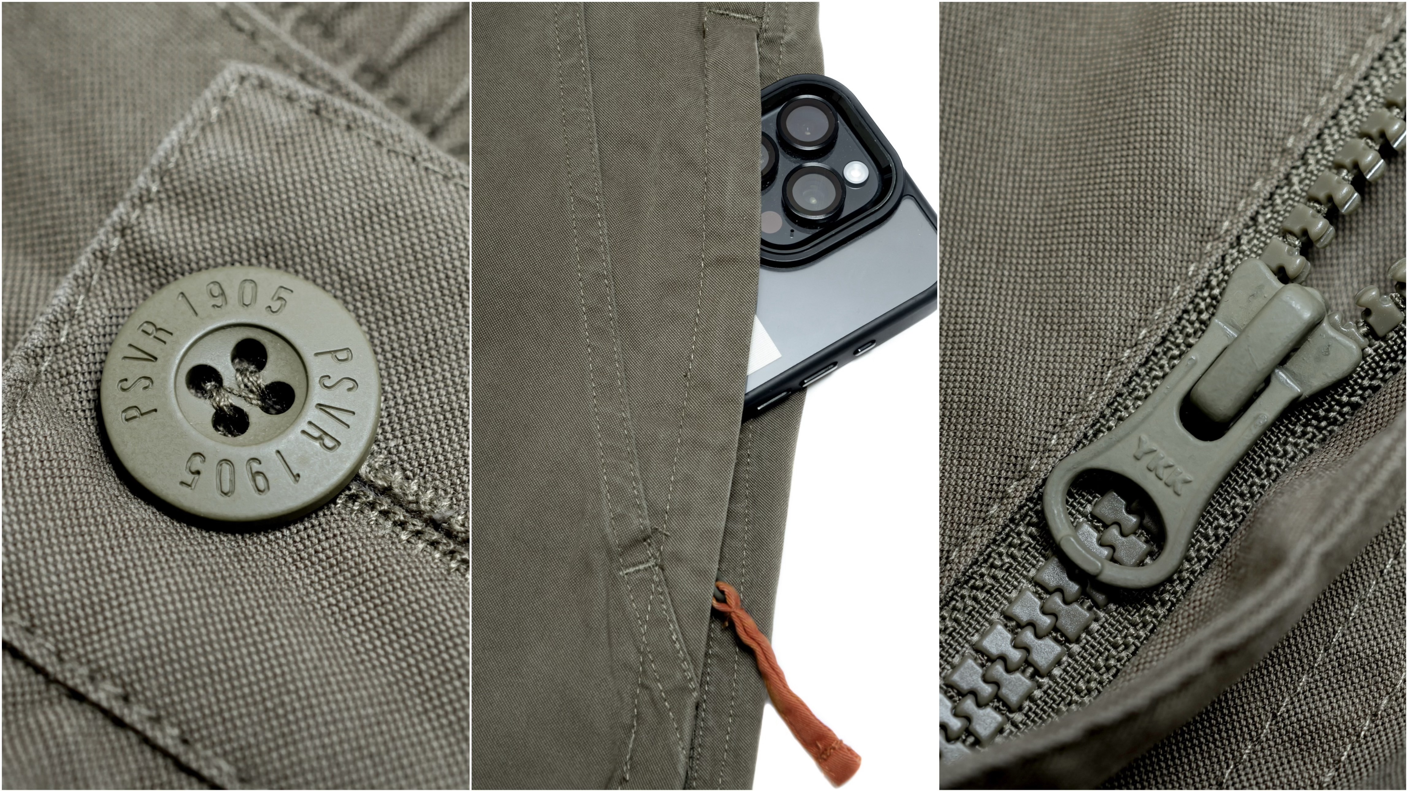 ● 輔料採用品牌獨家尿素釦搭配YKK拉鍊,提升使用質感與耐用度。