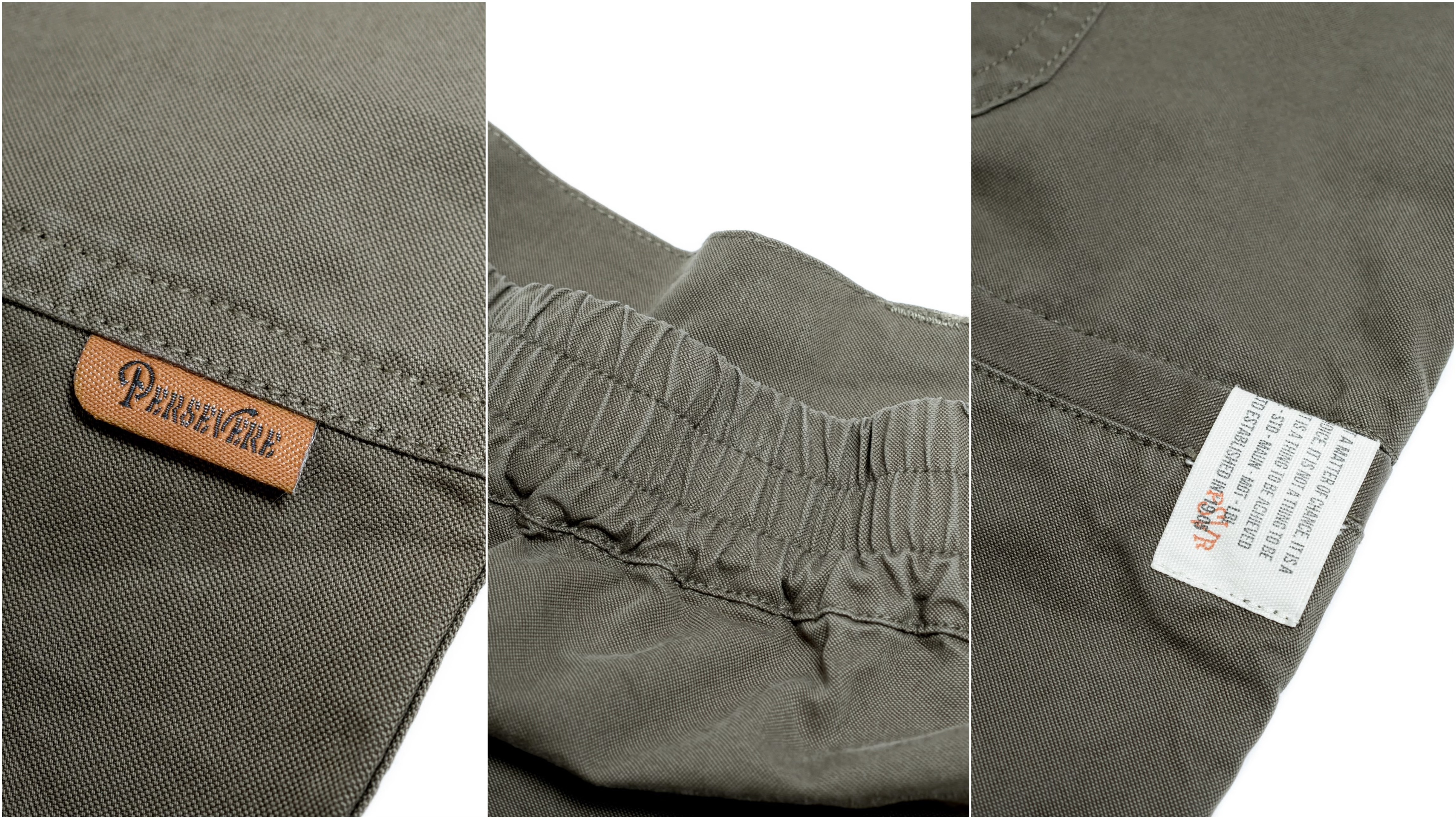 ● 褲管剪接處安排品牌橘色織標、小插袋搭配米白織標,提升整體質感。