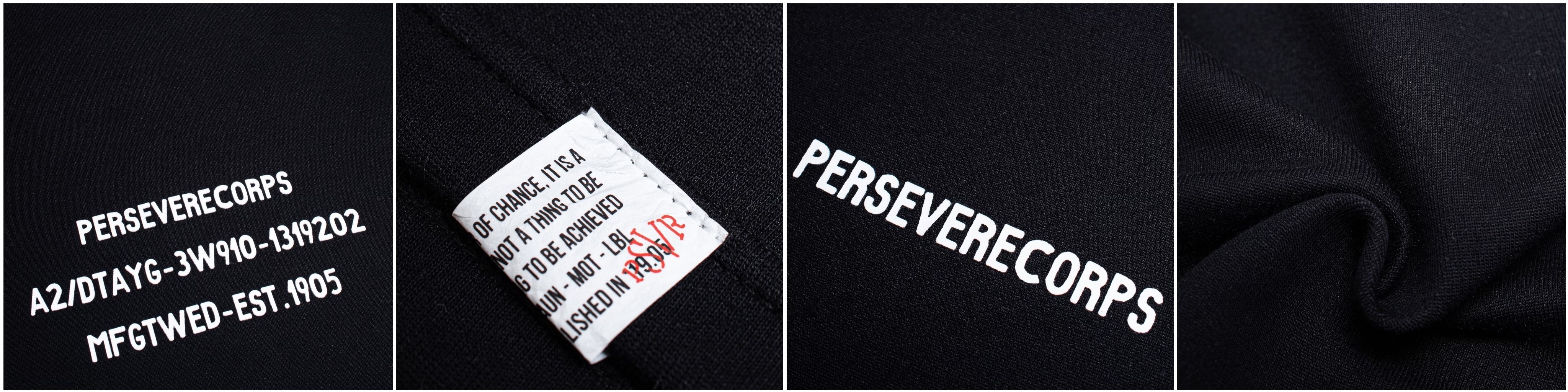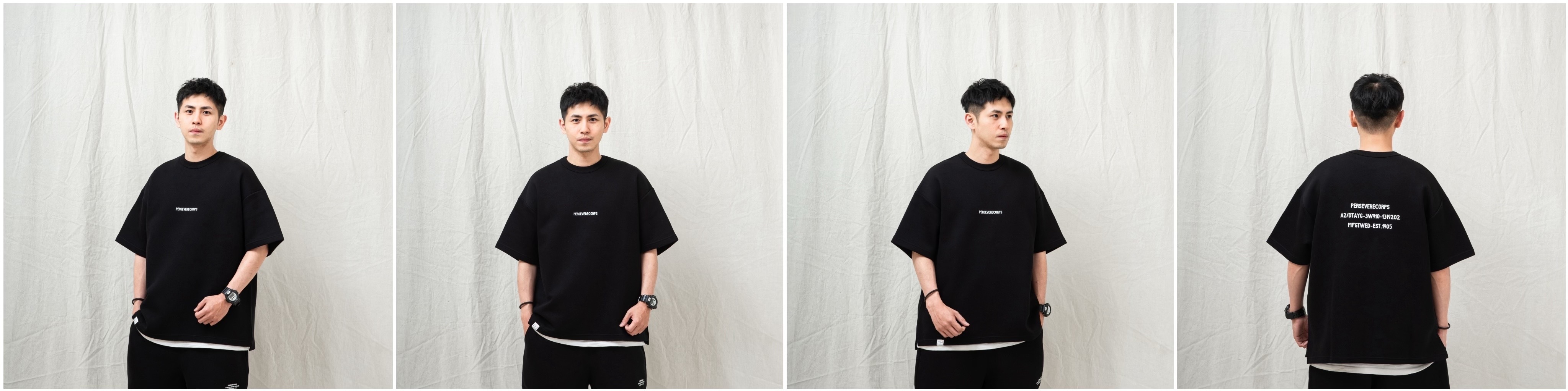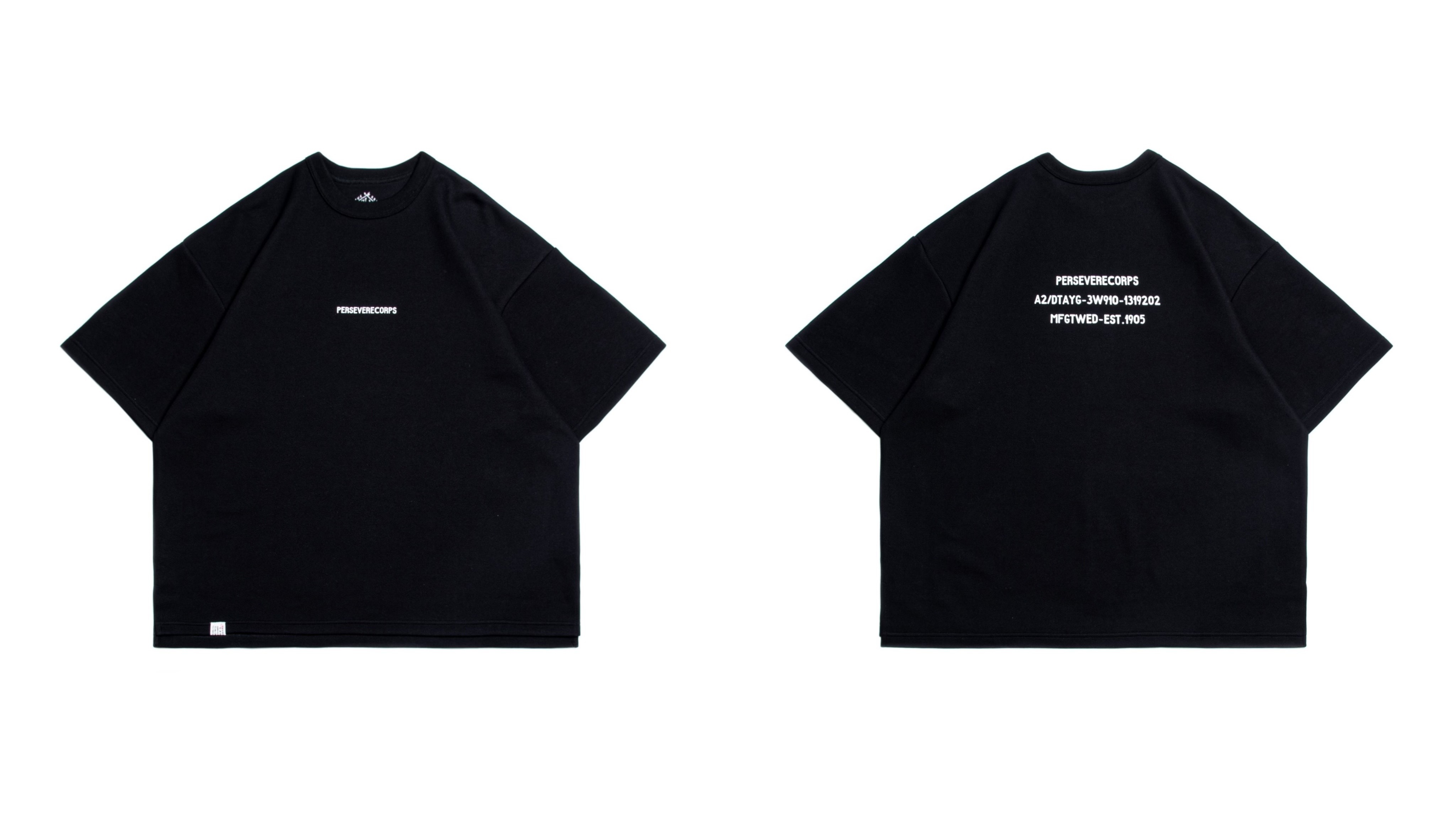 PERSEVERE 春夏首發套裝 – 寬版舒適棉質T恤全新發售,採用抗皺混紡棉質布料進行製作,提供超舒適著用質感,適合作為休閒、運動、居家穿著的日常單品,做工細節部分,防止領口變形,透過加厚羅紋包覆且外包車縫方式固定,提升耐穿度,版型則以寬鬆落肩作為設定,同時進行二次預縮處理的工序,以延長衣物的使用壽命。