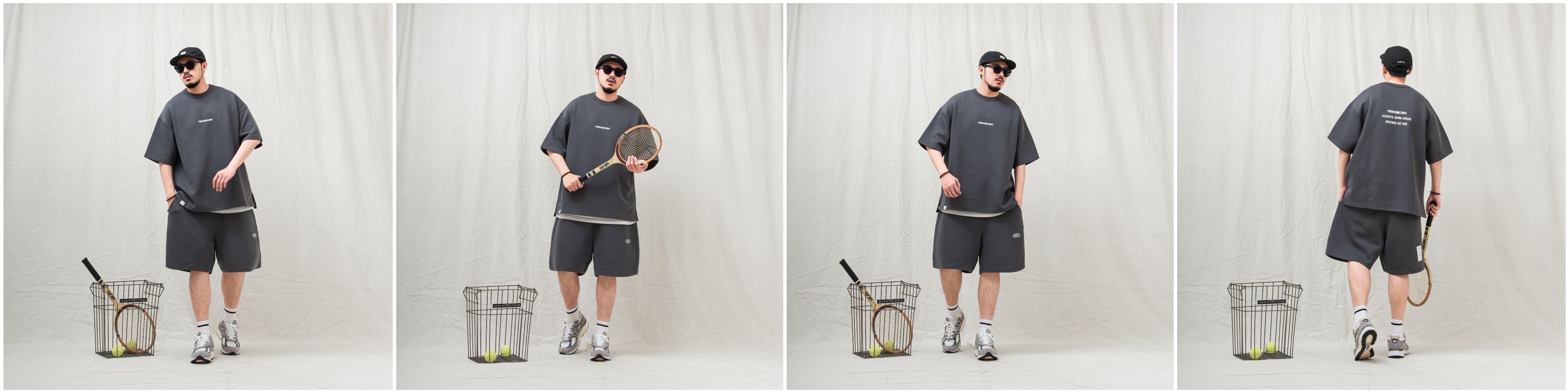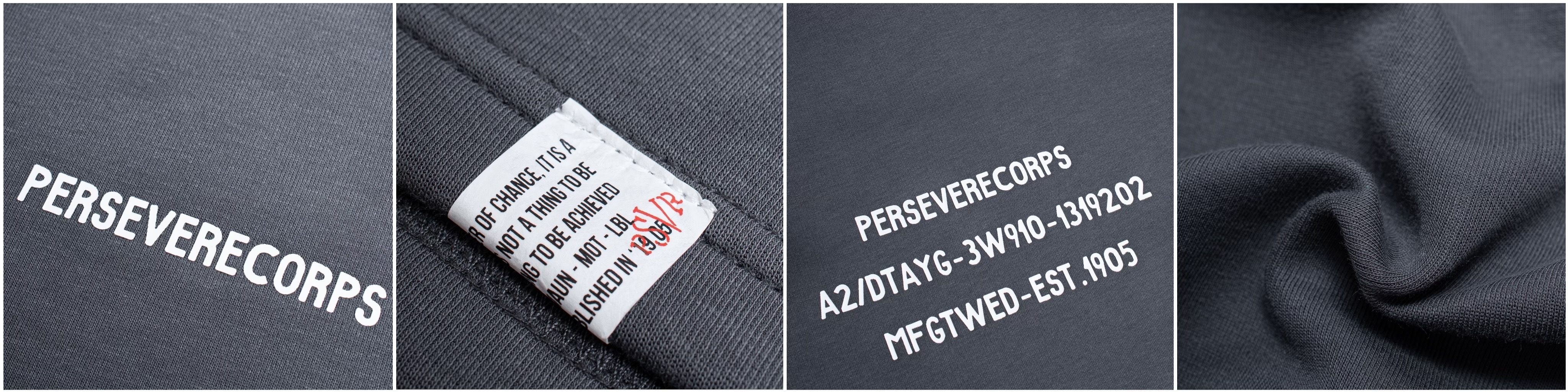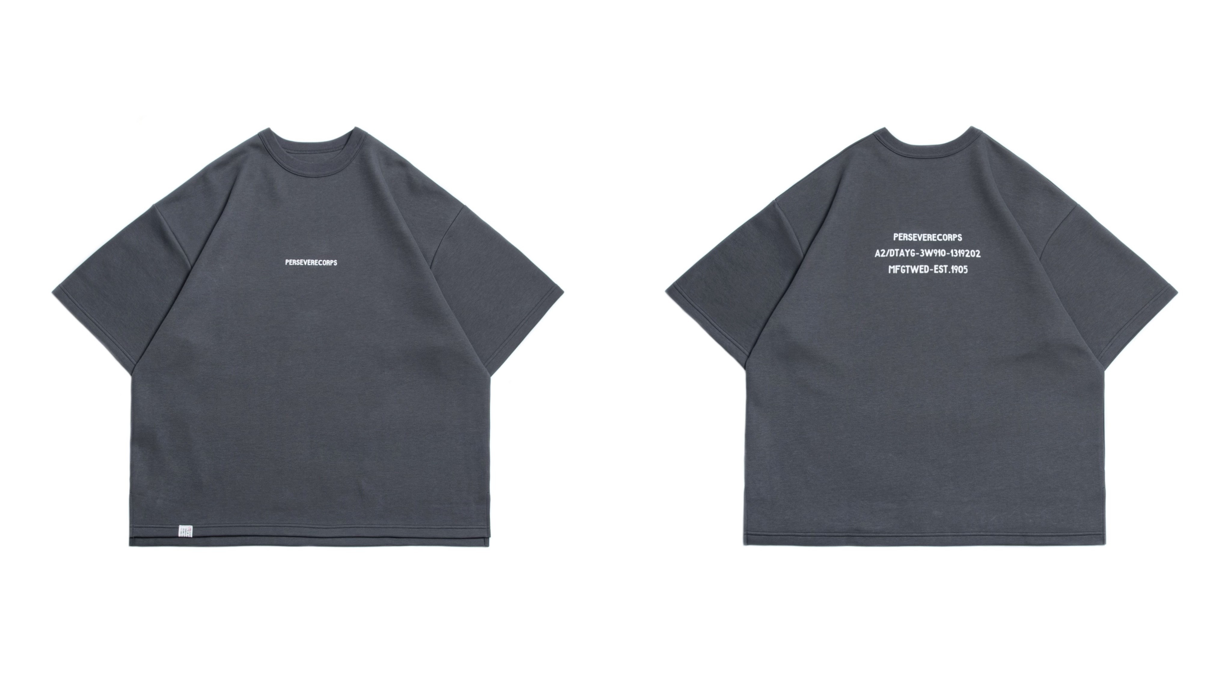 PERSEVERE 春夏首發套裝 – 寬版舒適棉質T恤全新發售,採用抗皺混紡棉質布料進行製作,提供超舒適著用質感,適合作為休閒、運動、居家穿著的日常單品,做工細節部分,防止領口變形,透過加厚羅紋包覆且外包車縫方式固定,提升耐穿度,版型則以寬鬆落肩作為設定,同時進行二次預縮處理的工序,以延長衣物的使用壽命。