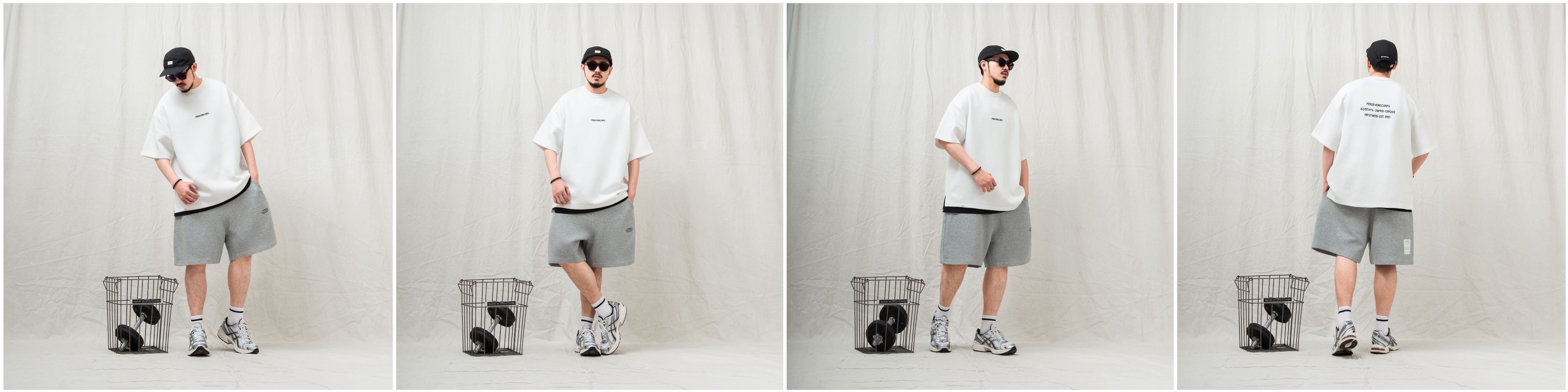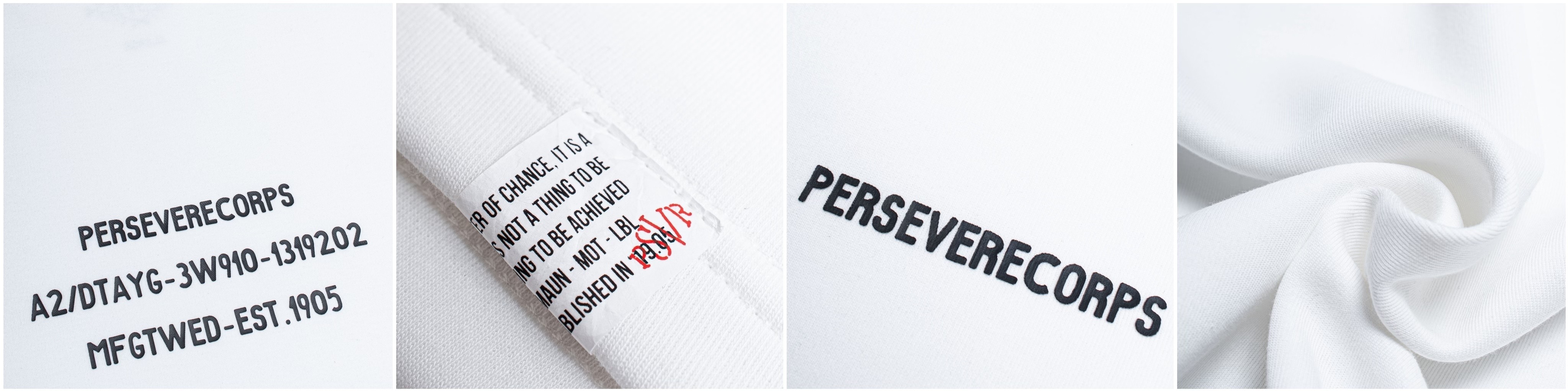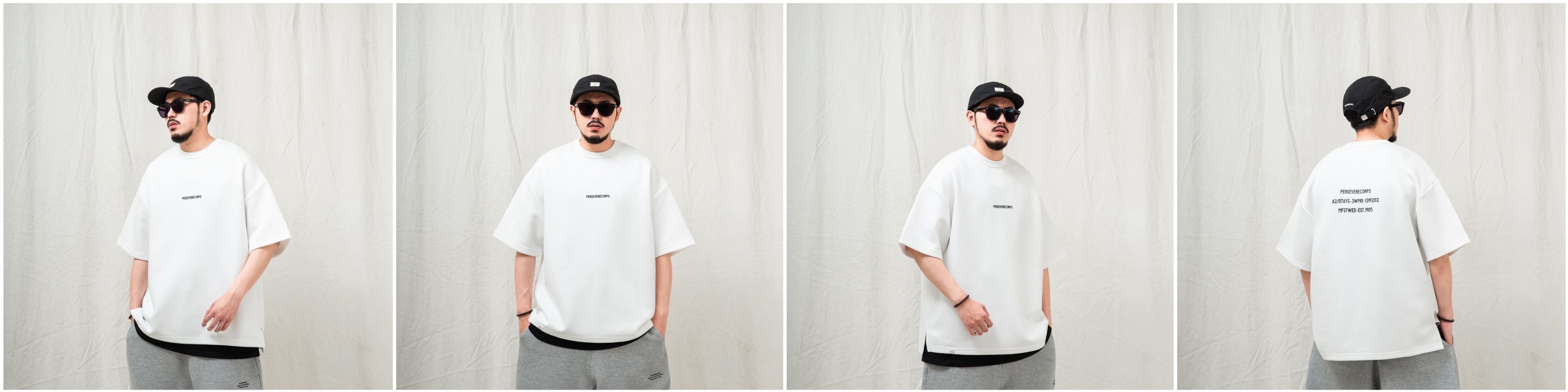 PERSEVERE 春夏首發套裝 – 寬版舒適棉質T恤全新發售,採用抗皺混紡棉質布料進行製作,提供超舒適著用質感,適合作為休閒、運動、居家穿著的日常單品,做工細節部分,防止領口變形,透過加厚羅紋包覆且外包車縫方式固定,提升耐穿度,版型則以寬鬆落肩作為設定,同時進行二次預縮處理的工序,以延長衣物的使用壽命。