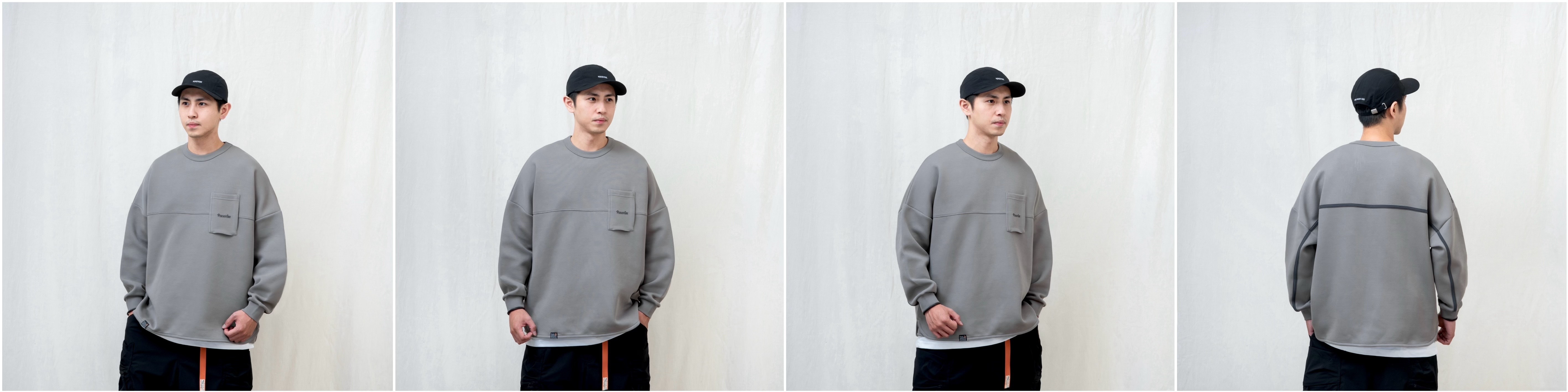 秋冬人氣定番飾邊口袋長袖T恤全新發售,選用與春夏棉質套裝相同面料製作,具有抗皺、透氣、超舒適的布料特色,提供超舒適的著用質感,並在衣身背面使用本布及撞色飾邊,增添設計質感,細節部分,為防止領口變形,透過加厚羅紋包覆且外包車縫方式固定,衣襬內側以包邊工序取代一般三本車拷克,加強與提升T恤的耐穿與細節完成度,且以經典特殊落肩版型作為設定,搭配左肩立體編碼印刷設計,傳達出輕鬆休閒的氛圍。
