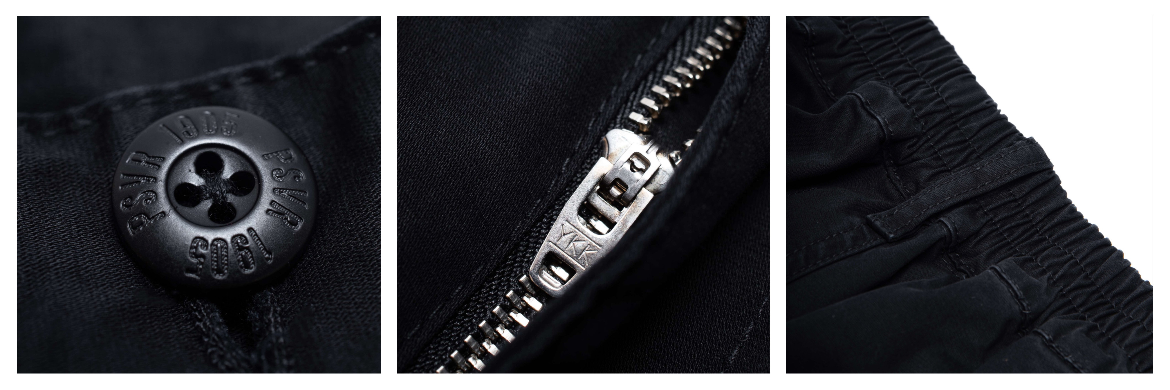 ● 後腰圍鬆緊帶設定、YKK 拉鍊五金使用、品牌尿素釦、褲管小插袋搭配品牌米白織標..等等細節,增加穿著的使用質感。