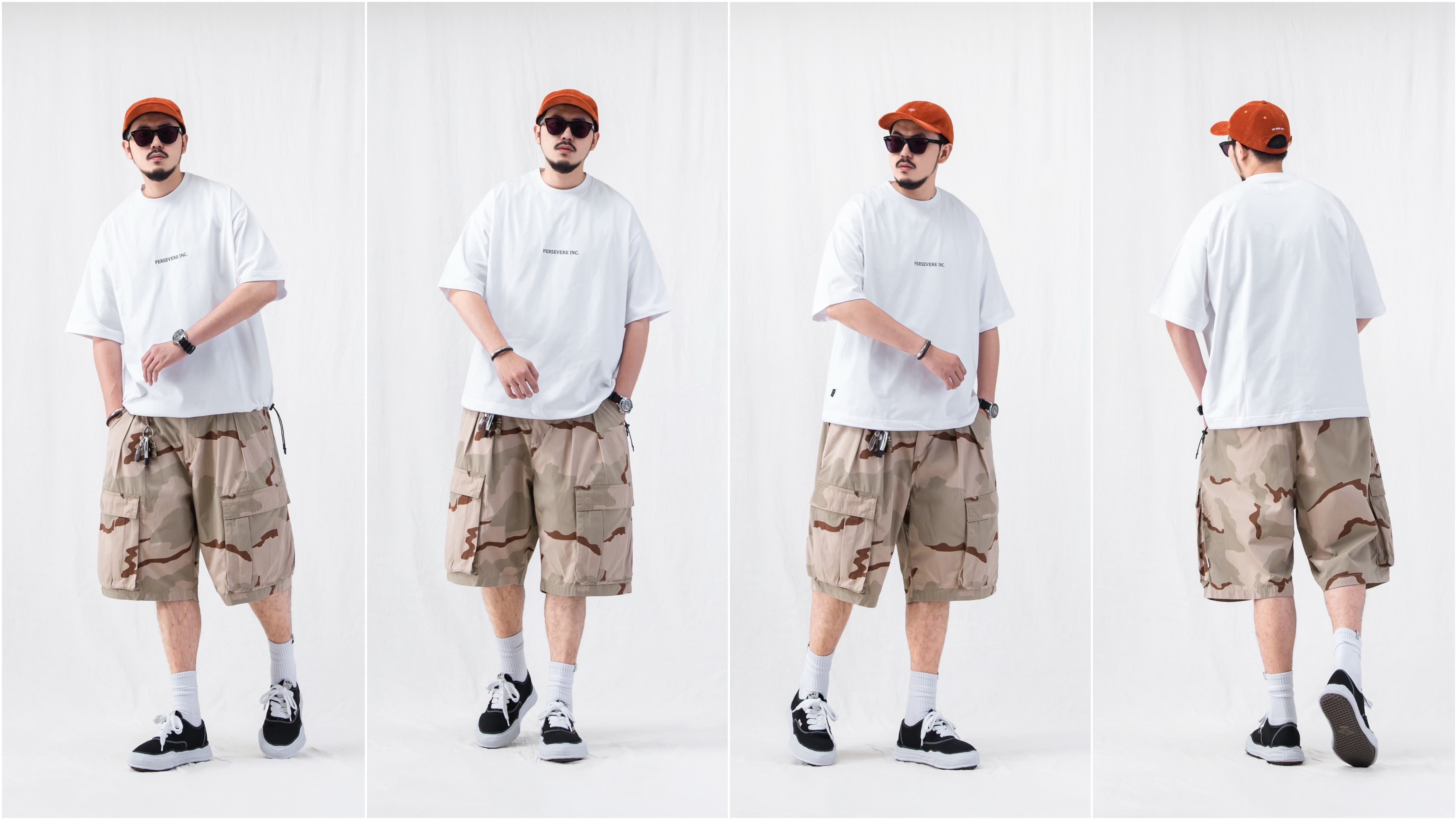 品牌首款迷彩六分口袋短褲正式發售,選用高品質尼龍混紡棉質抗撕裂面料製作,全新設定六分褲長版型,透過腰圍雙摺線營造著用立體感,並配置八個收納口袋,提升日常穿搭的實用性與層次感。