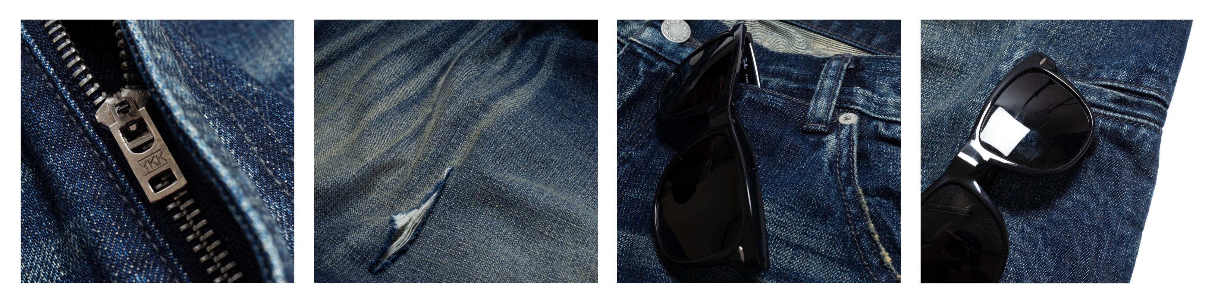 Distressed stonewashed denim jeans 特色: