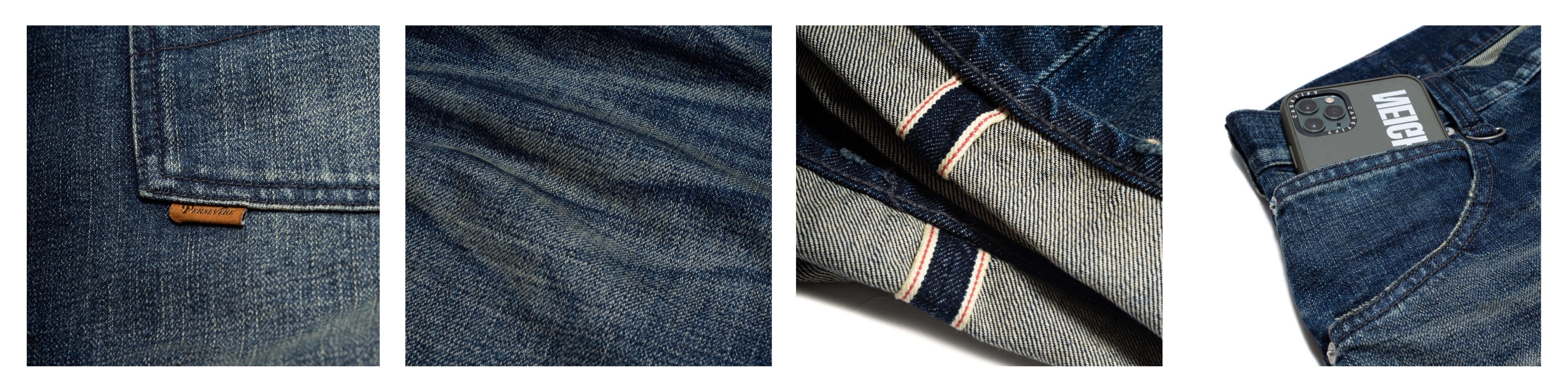 PERSEVERE 2021 / 2022 新年限定套裝組合 - 職人手感重磅石洗破壞丹寧牛仔褲全新發售,以14.5oz 的重磅赤耳丹寧布料製作,透過職人師傅手工刷製的貓鬚紋路、立體摺痕與破壞細節,呈現出令人心神嚮往的工藝美感,搭配舊化石洗後加工,創造出長期著用後所產生的自然色落感,此外,寬鬆立體的錐形褲版設定,讓下身線條更為俐落,輕鬆與各種風格混合搭配。