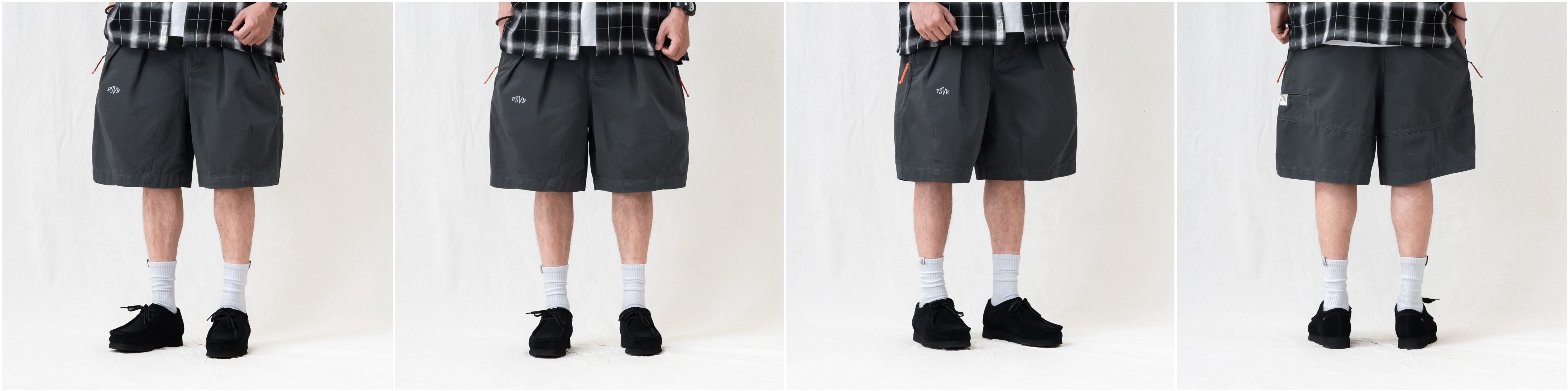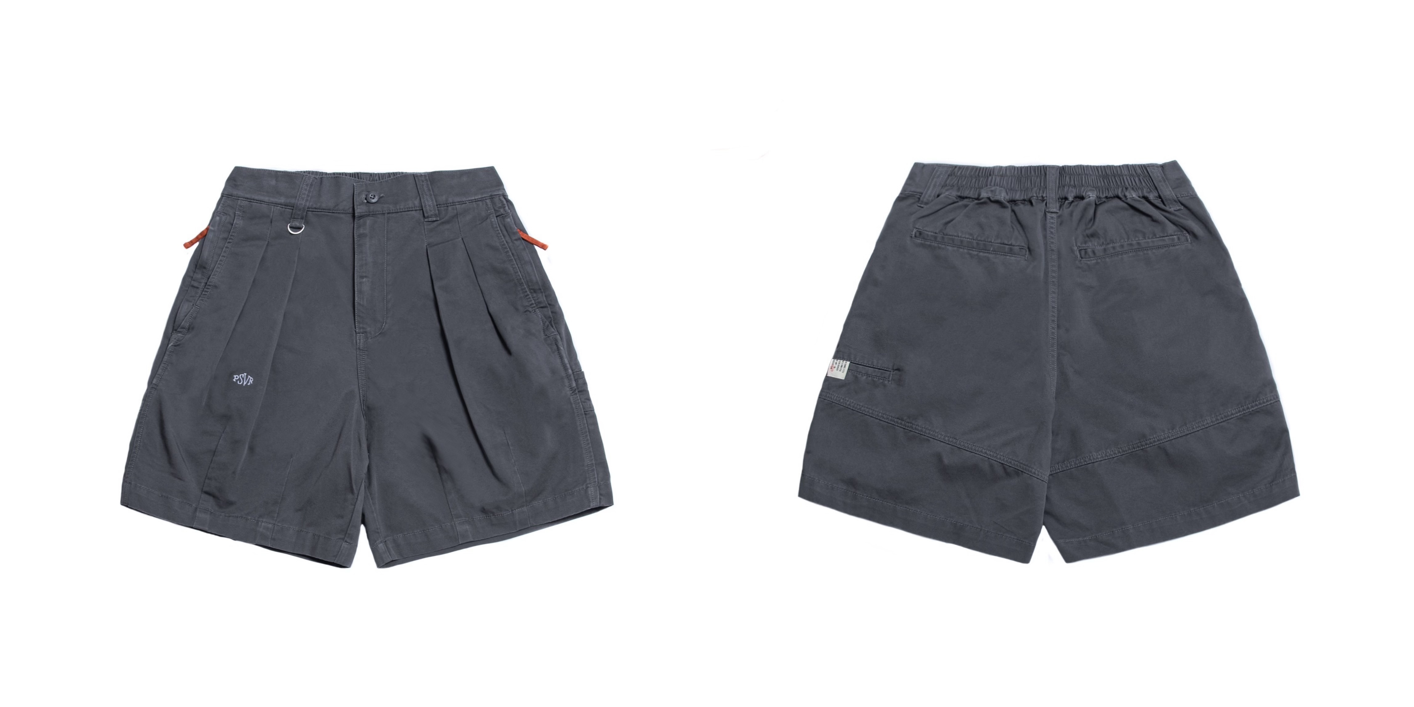 夏季氣球感立體雙摺短褲全新發售,挑選二款具有挺度的水洗牛仔、斜紋面料製作,以四道立體腰圍摺線搭配褲口褶線,形成立體寬鬆的版型,牛仔布料特別採用多次水洗工序,呈現自然著用的淺色水洗質感。細節配置:拉鍊袋橘色拉繩、褲耳D字環、7個收納口袋,提升著用時的實用度。