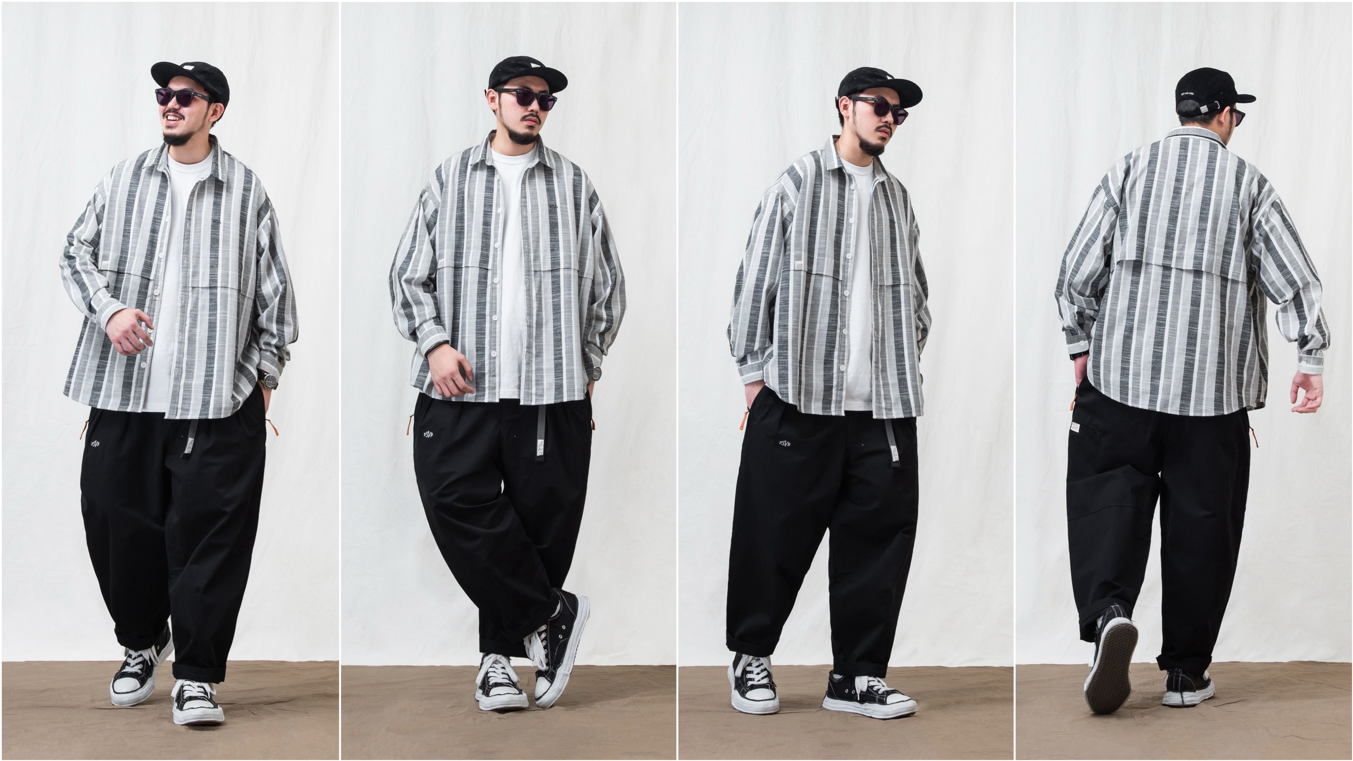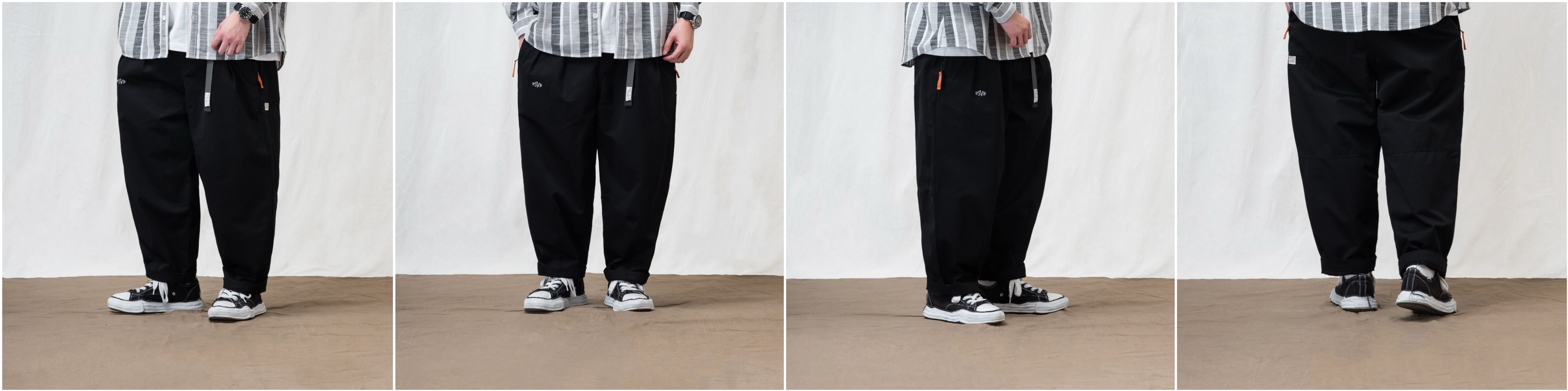 品牌立體氣球感雙摺錐形長褲全新發售,選用二款具有挺度的高密度斜紋、牛仔面料製作,以四道立體腰圍摺線搭配一道立體褲口褶線,形塑寬鬆的立體輪廓,並進行酵石水洗工序,呈現自然著用的色澤感,細節融入實用概念:D字環、橘色拉繩、七個收納口袋,增添著用時的便利度。