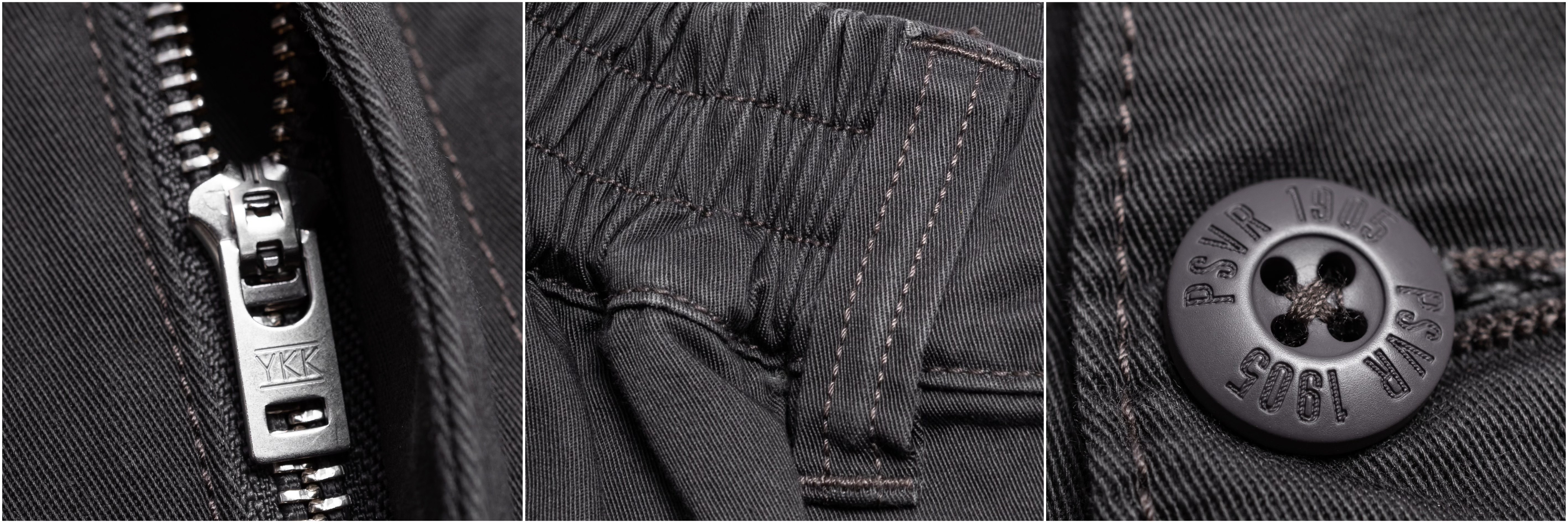 ● 精選具有細緻光澤感的高密度斜紋面料與水洗牛仔布料製作,布性皆帶有挺度且舒適。