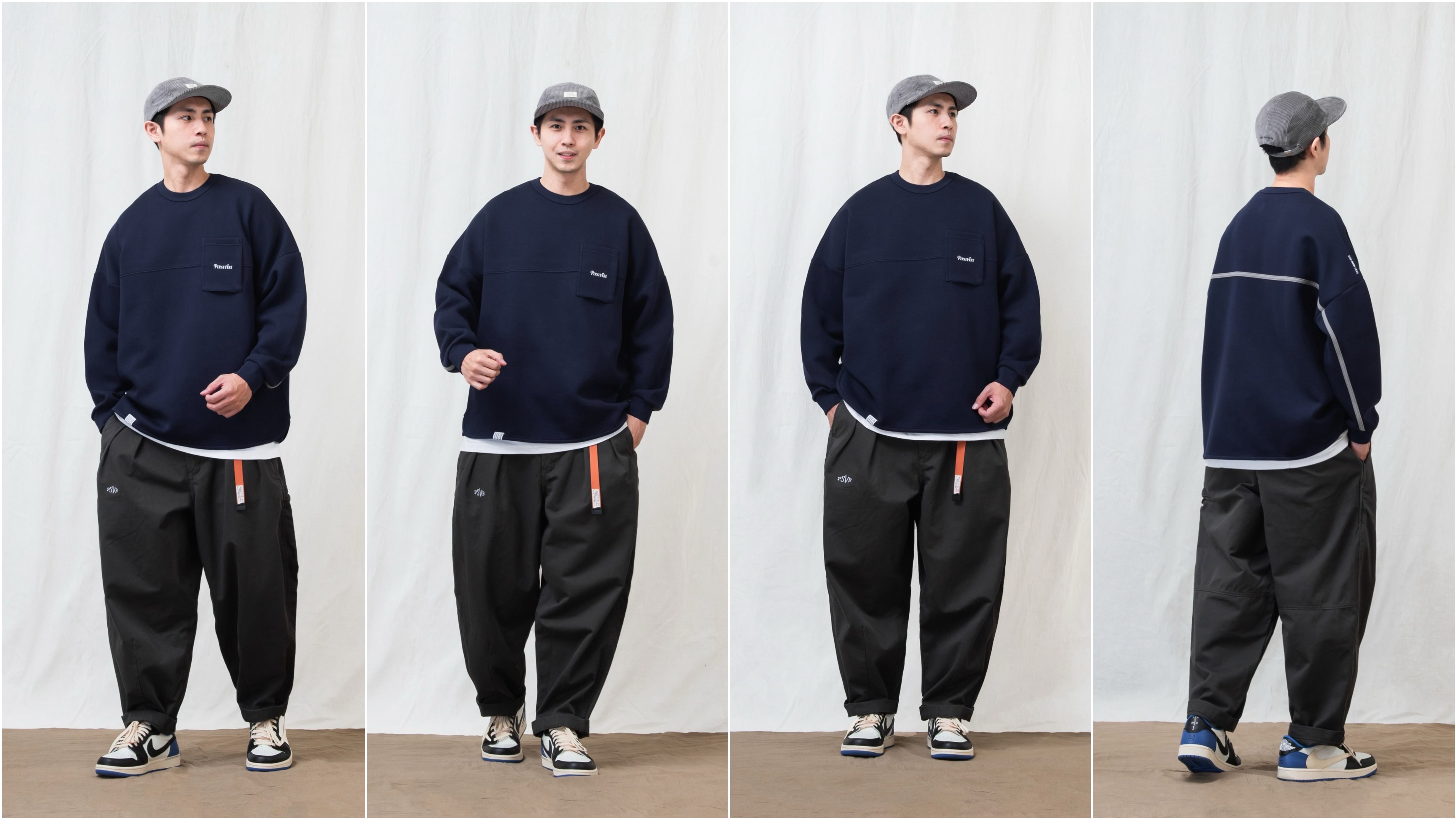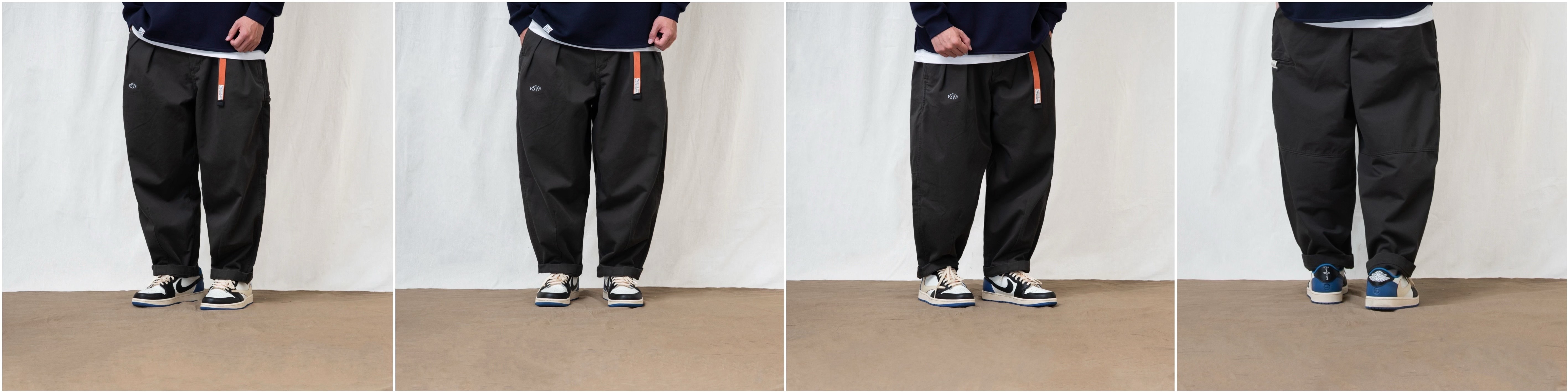 品牌立體氣球感雙摺錐形長褲全新發售,選用二款具有挺度的高密度斜紋、牛仔面料製作,以四道立體腰圍摺線搭配一道立體褲口褶線,形塑寬鬆的立體輪廓,並進行酵石水洗工序,呈現自然著用的色澤感,細節融入實用概念:D字環、橘色拉繩、七個收納口袋,增添著用時的便利度。