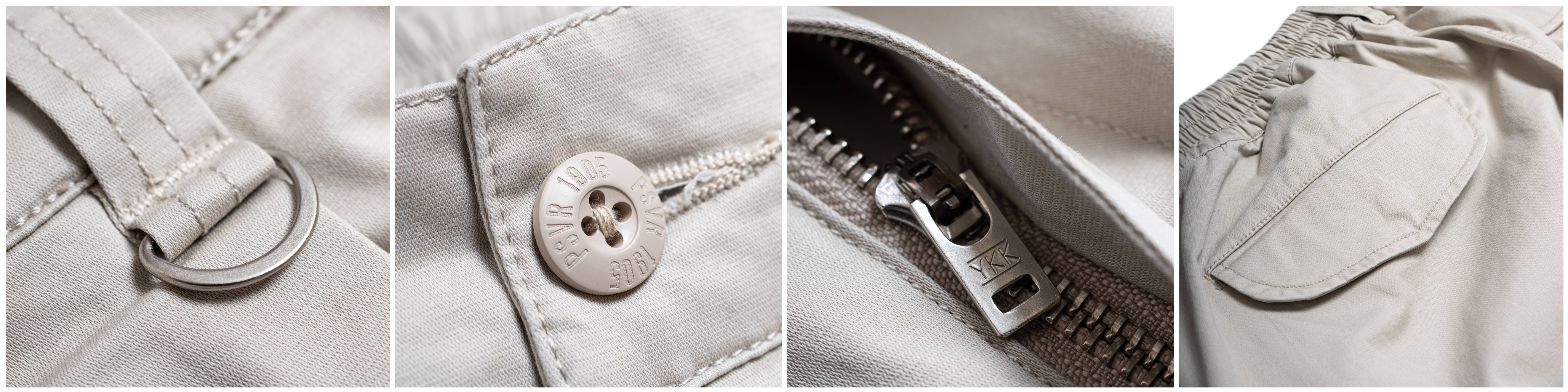 ● 後腰圍鬆緊帶設定搭配七個口袋細節,滿足各種尺寸需求並加強實用機能性。