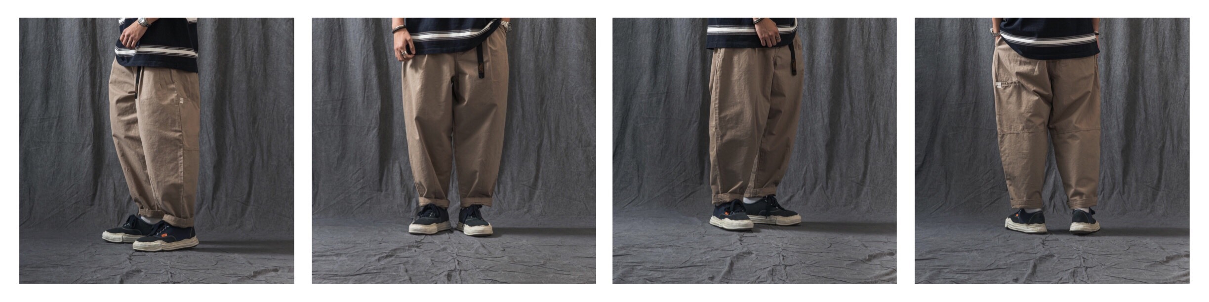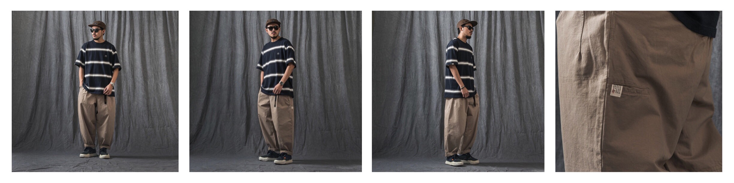 ● 以上寬下窄的錐形褲款作為設定,在褲口增加剪裁細節提升穿著時的褲管立體度。