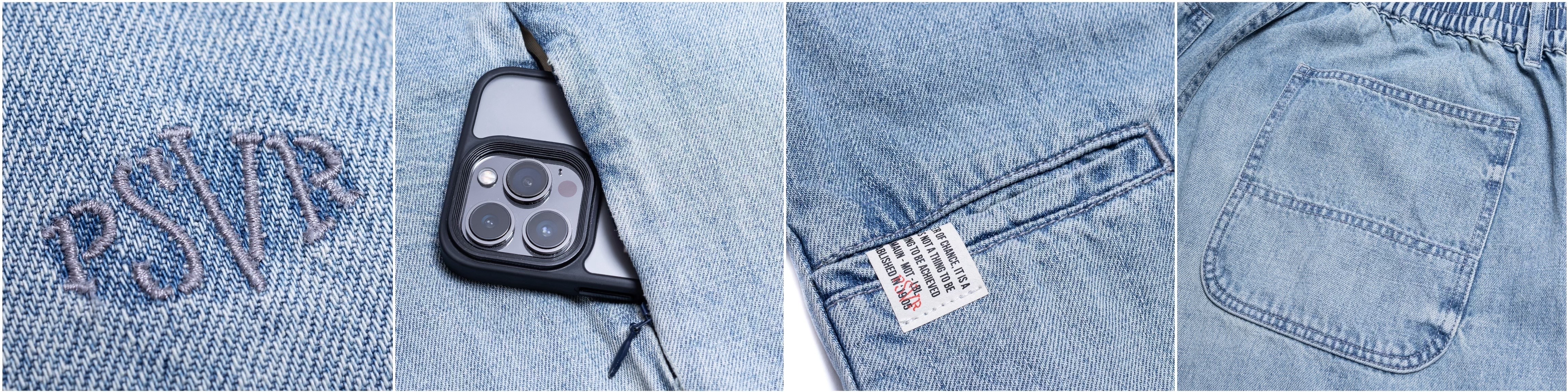 ● 寬鬆輪廓的立體錐形褲型作為設定,搭配 PSVR 字樣電繡、米白圖樣織標,提升細節質感與注目度。
