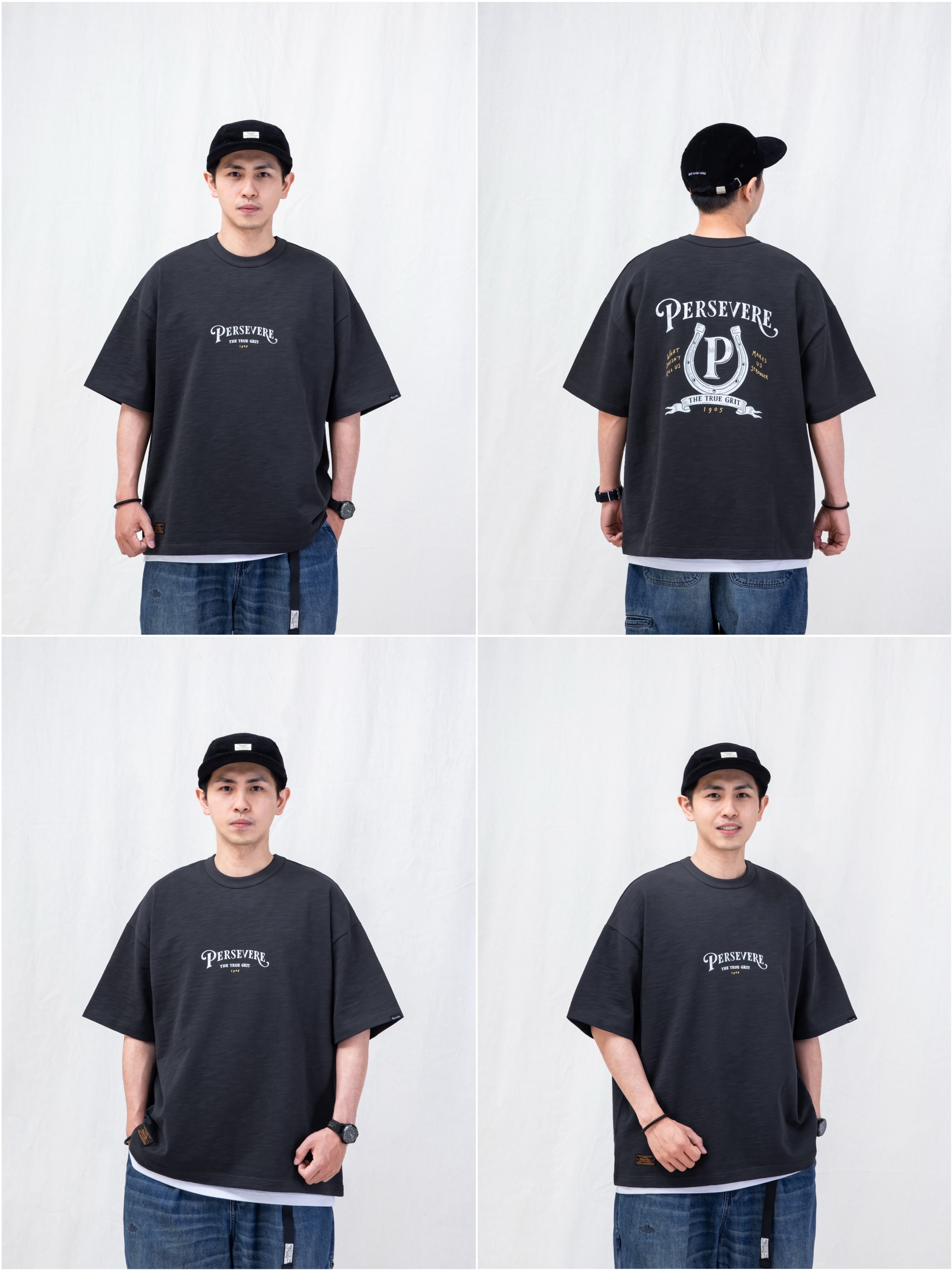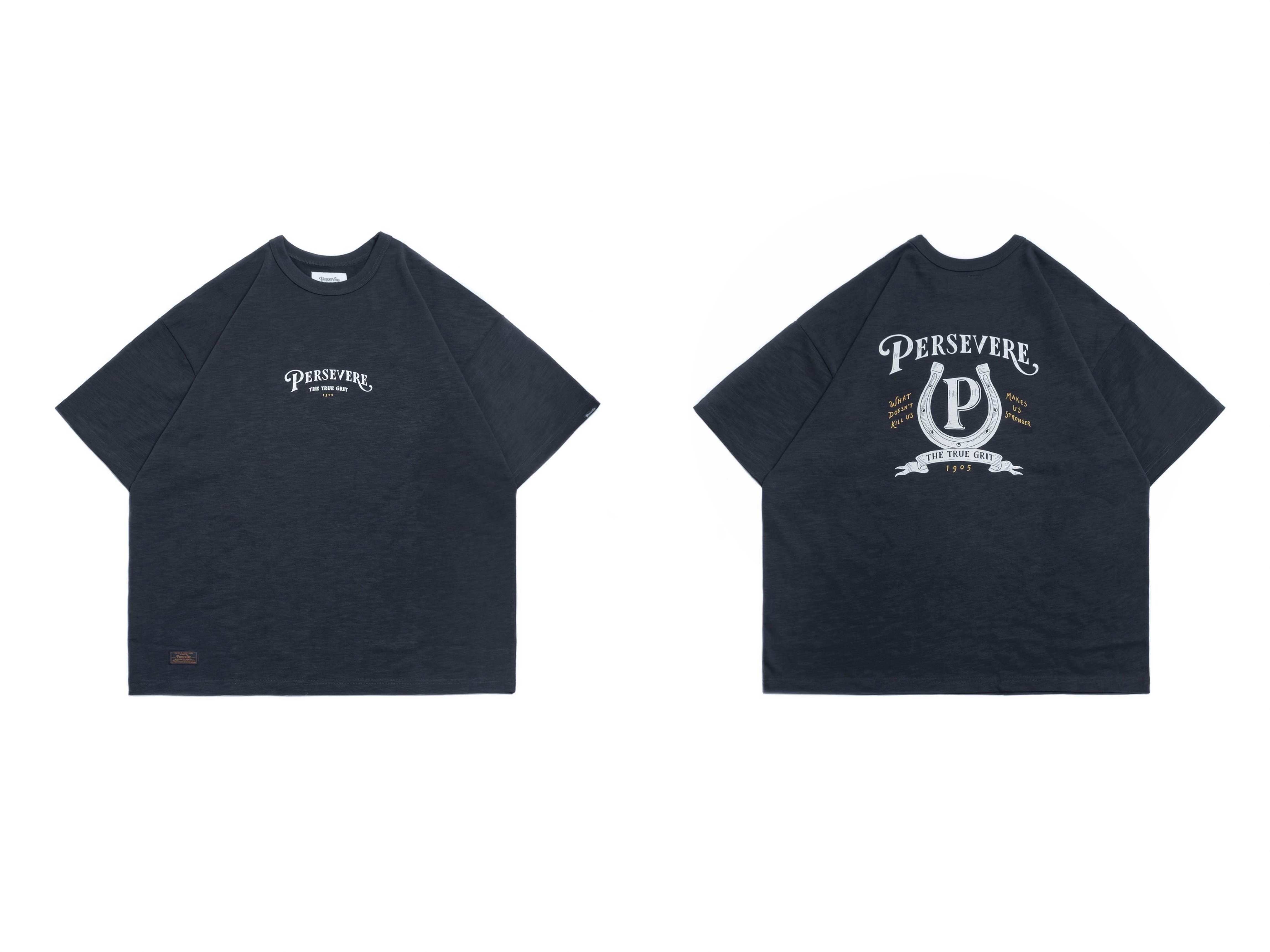 PERSEVERE 春夏手繪馬蹄鐵圖像T恤全新發售,特選高磅數竹節棉面料進行製作,以極具特色的手繪風格呈現美式復古馬蹄鐵圖像。工序方面,採用二次水洗預縮製程,大幅減低衣物縮水窘境,選用加厚羅紋包覆領口,達到防止變形與提升耐穿度,版型則採用寬鬆落肩剪裁作為設定,單穿或混搭都相當合適。