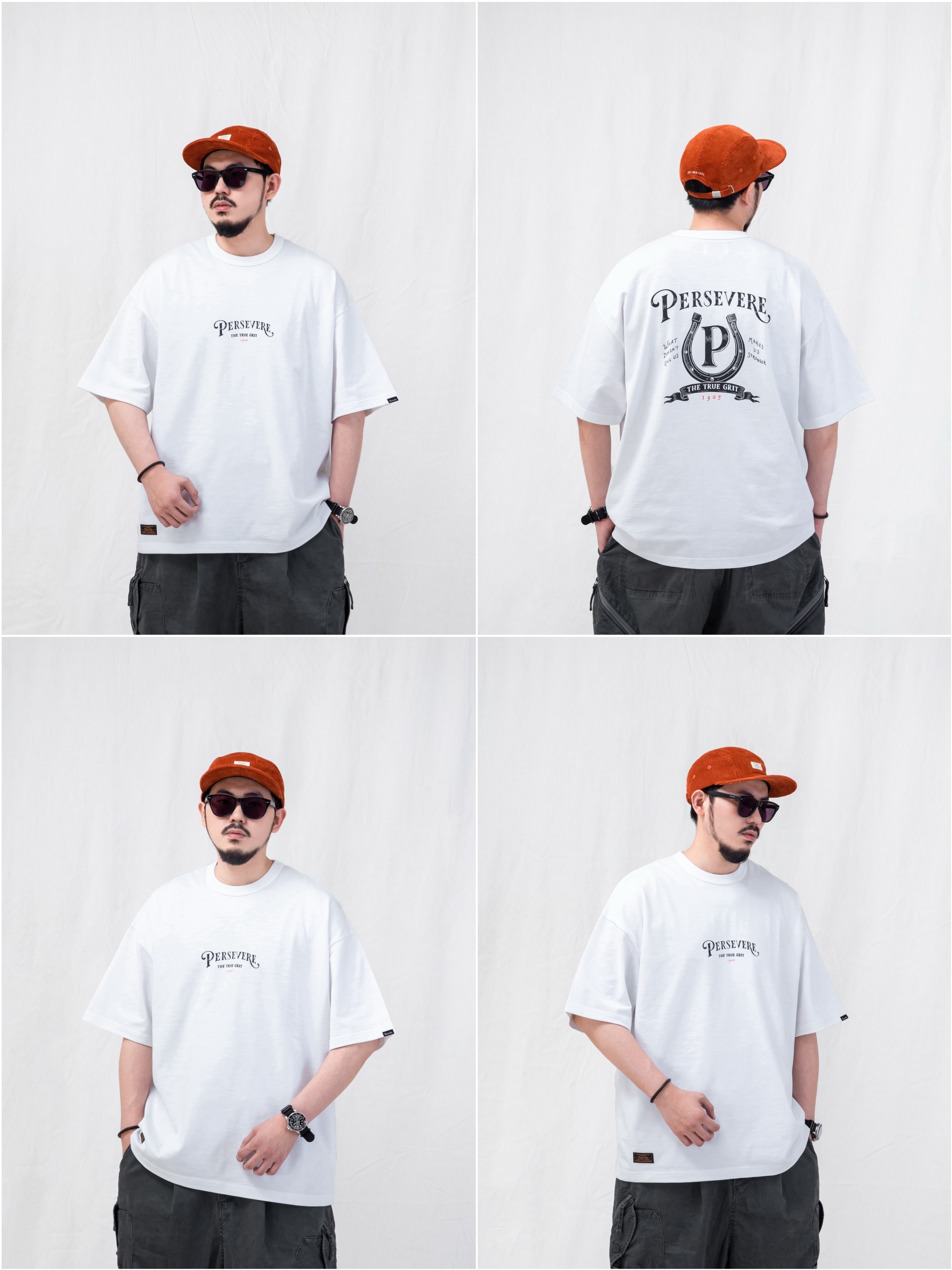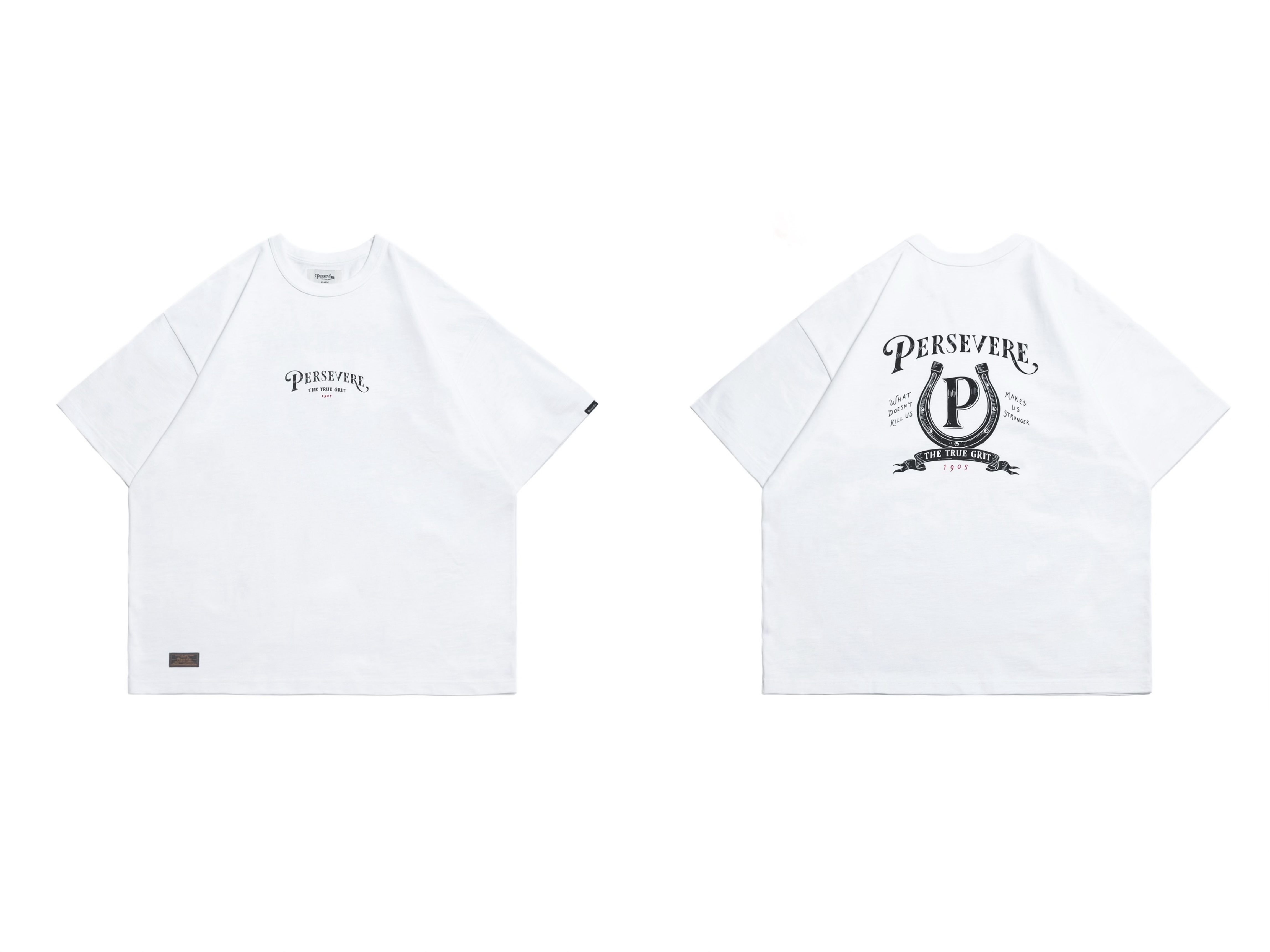 PERSEVERE 春夏手繪馬蹄鐵圖像T恤全新發售,特選高磅數竹節棉面料進行製作,以極具特色的手繪風格呈現美式復古馬蹄鐵圖像。工序方面,採用二次水洗預縮製程,大幅減低衣物縮水窘境,選用加厚羅紋包覆領口,達到防止變形與提升耐穿度,版型則採用寬鬆落肩剪裁作為設定,單穿或混搭都相當合適。