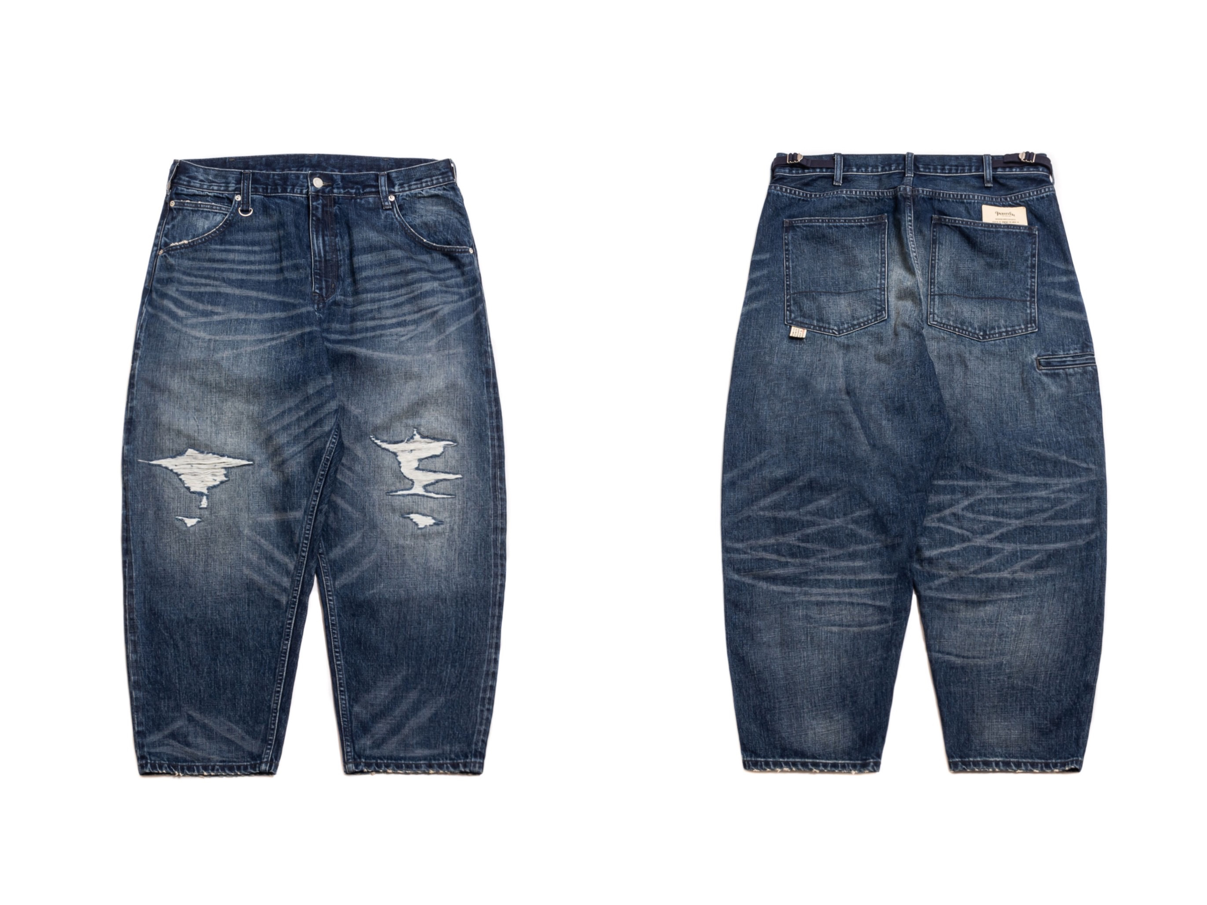 重磅石洗破壞赤耳丹寧牛仔褲全新發售,挑選14.5oz 的重磅丹寧布料製作,以寬鬆立體的錐形褲版作為設定,融入強力磨損細節,透過職人師傅手工刷製的貓鬚紋路與破壞加工,並內拼接補強牛仔面料,維持破損型態,搭配數次舊化石洗工序,呈現讓人神往的漸層色落工藝,適合與各種風格混合穿搭,輕鬆簡單穿出獨特造型感。