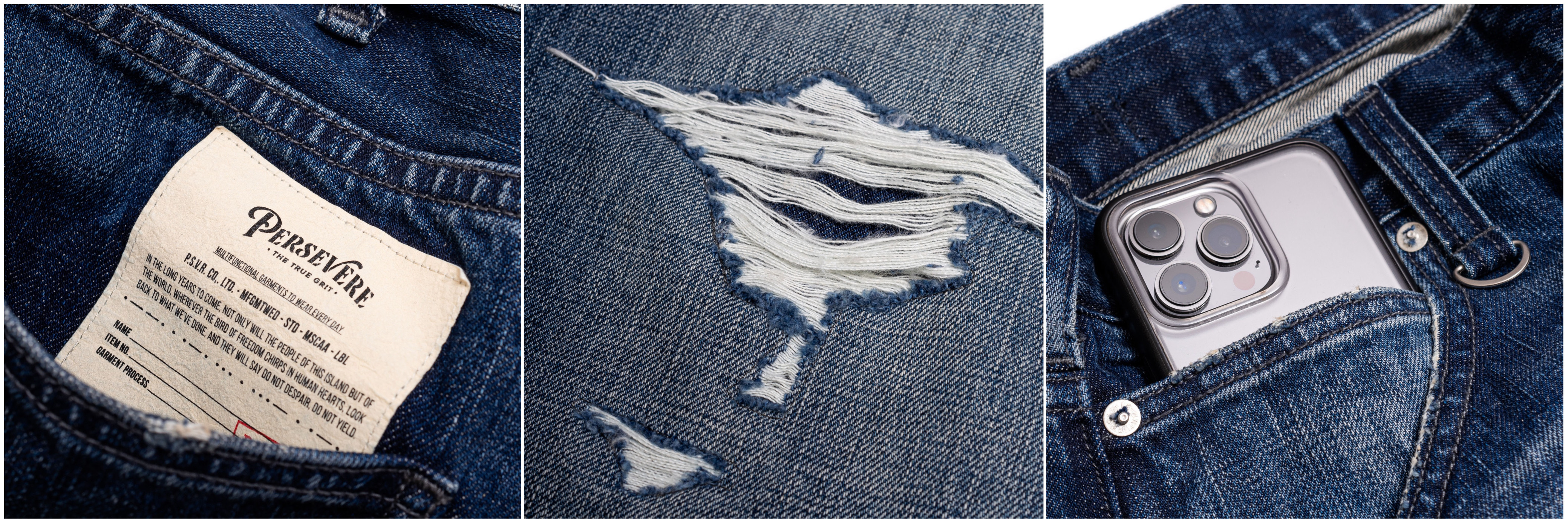 ● 精選 14.5oz 重磅赤耳丹寧面料,布性厚實舒適帶有挺度。