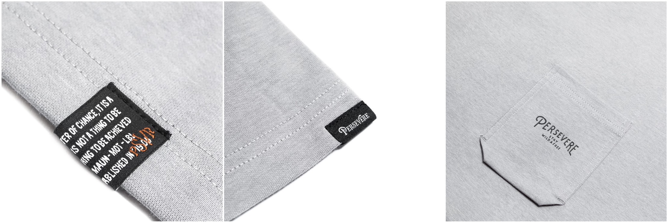 PERSEVERE 夏日定番款口袋T恤全新發售,升級面料等級,採用更加舒適抗皺的混紡精梳棉材質製作,細調整體尺寸比例,維持寬鬆落肩的版型設定,同時進行水洗預縮的工序,搭配領口加厚羅紋包覆的外包式車縫固定細節,避免領圍變形並提升耐穿度,以延長衣物的穿著壽命。