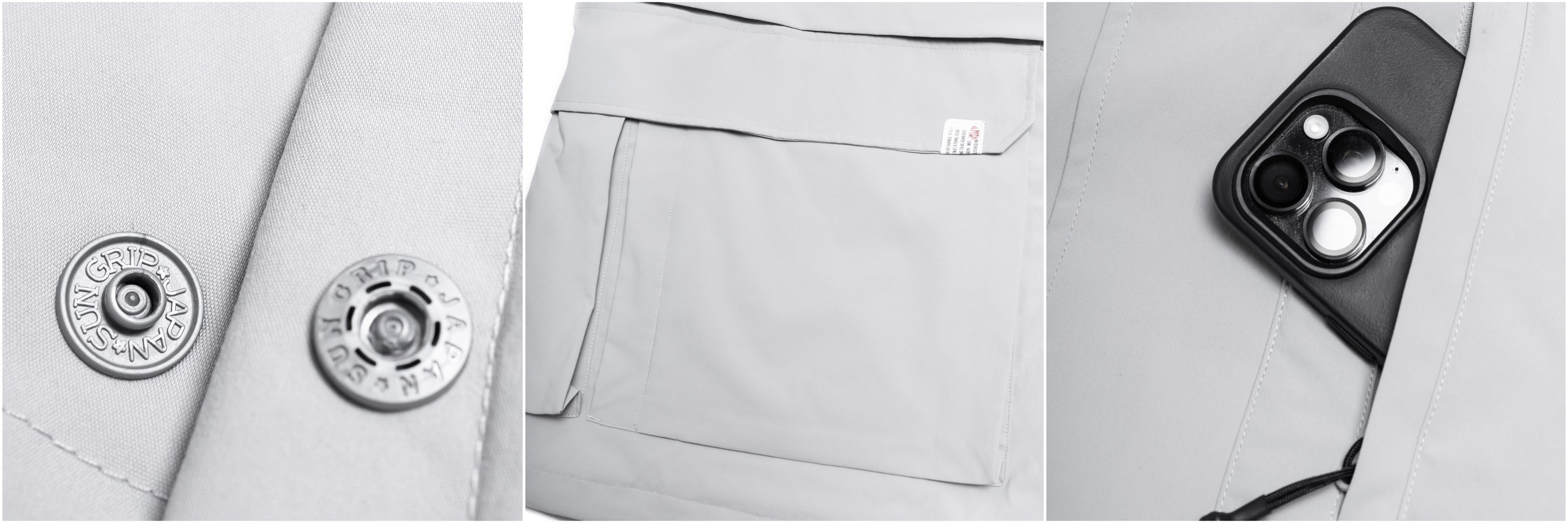 ● 選用輕量化防潑水面料,具有輕量、生活性防水、防風的機能特性。