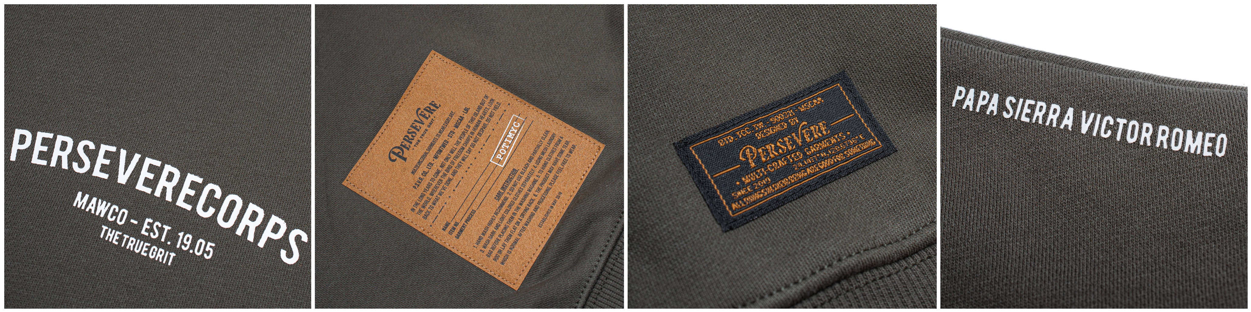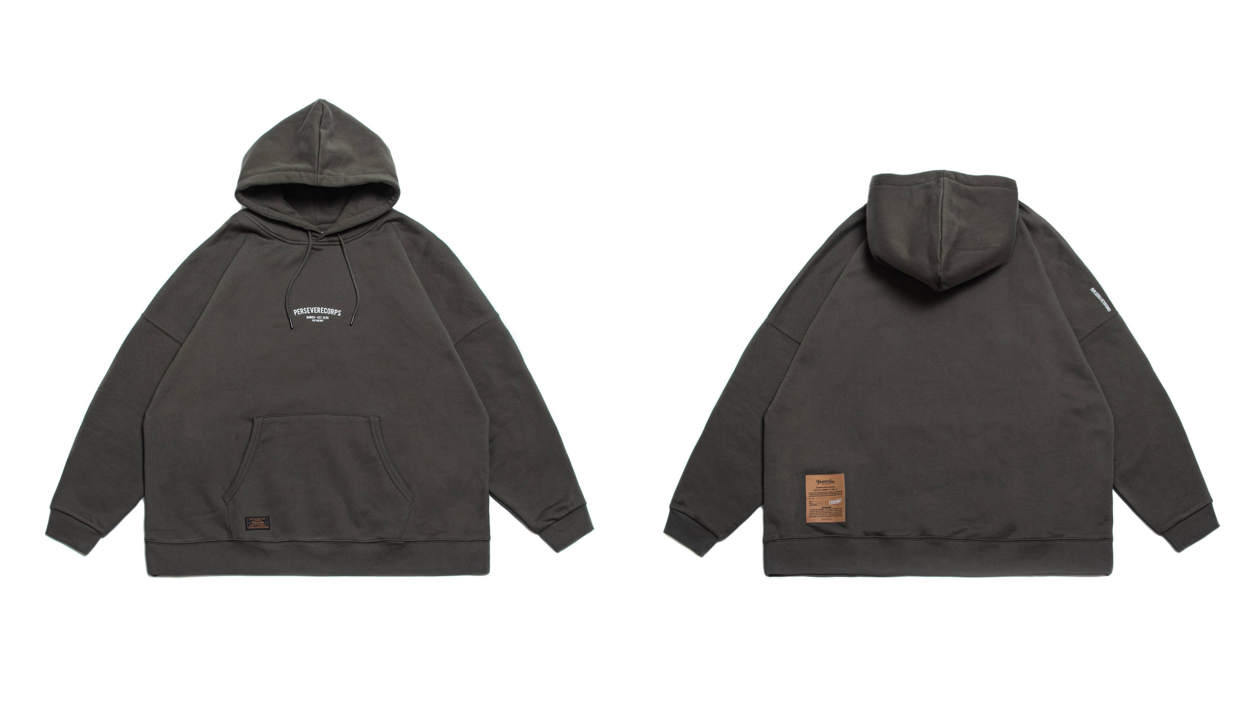 2022 秋冬定番款連帽T恤全新發售,從軍事角度擷取靈感,設想 Persevere 為虛擬軍事單位,以文字方式呈現 Persevere Corps 配合 IRSA. 編碼系統,將品牌縮寫的代碼融入細節設計,呼應整體概念,搭配品牌經典的特殊落肩版型,並挑選微刷毛面料製作,著用份量感十足,是一款無論單穿或搭配外套都相當合適的必備經典單品。