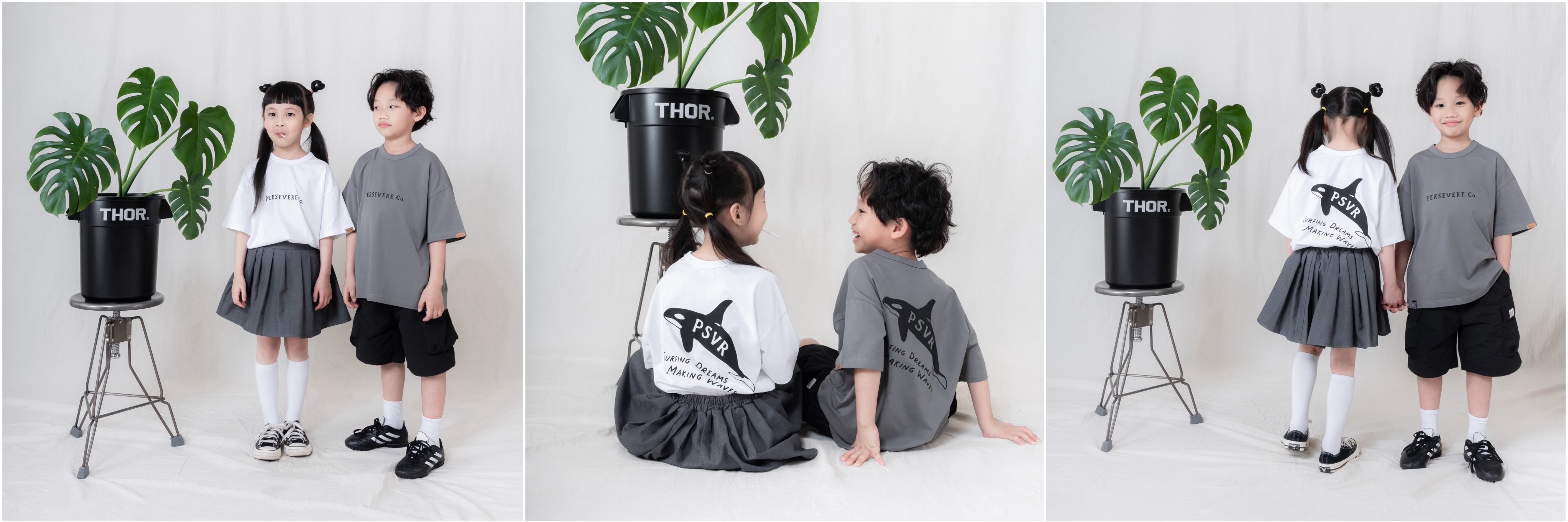 PERSEVERE 2025 春夏童裝全新販售,集合品牌經典的定番口袋Tee、虎鯨Tee、雷鳥Tee 作為設定,挑選厚薄適中的棉質混紡彈性面料製作,搭配寬鬆落肩輪廓,提供小朋友舒適涼爽的穿著感受,同時進行水洗預縮的工序,以延長衣物的穿著壽命。