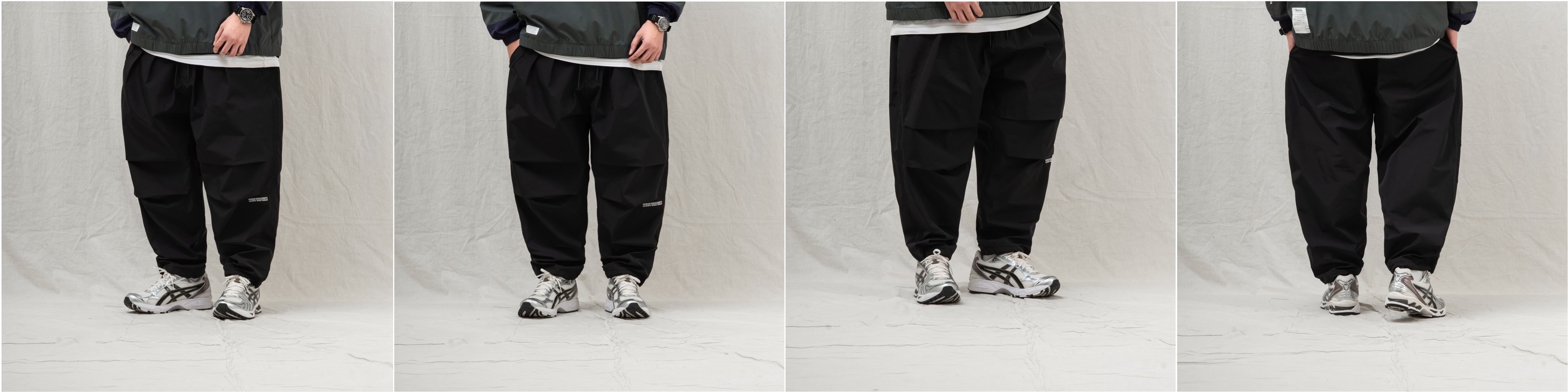 高抗風性防潑水尼龍傘兵褲全新發售,以高防風度需求作為設定,採用高濕阻抗指數的機能貼合面料製作,複合式的高密度布料帶有挺度,並提供耐磨、防潑水與高抗風的機能性,搭配立體寬鬆錐形版型,與褲管口調節抽繩配置,形成一款抗風度強的破風傘兵褲。