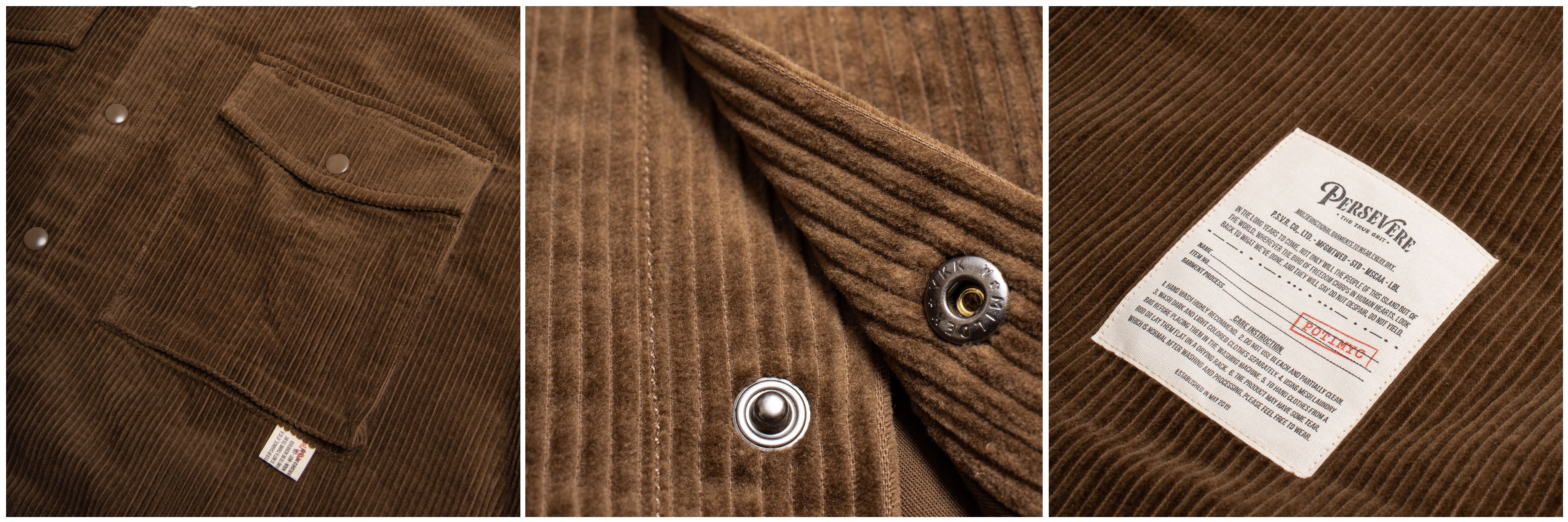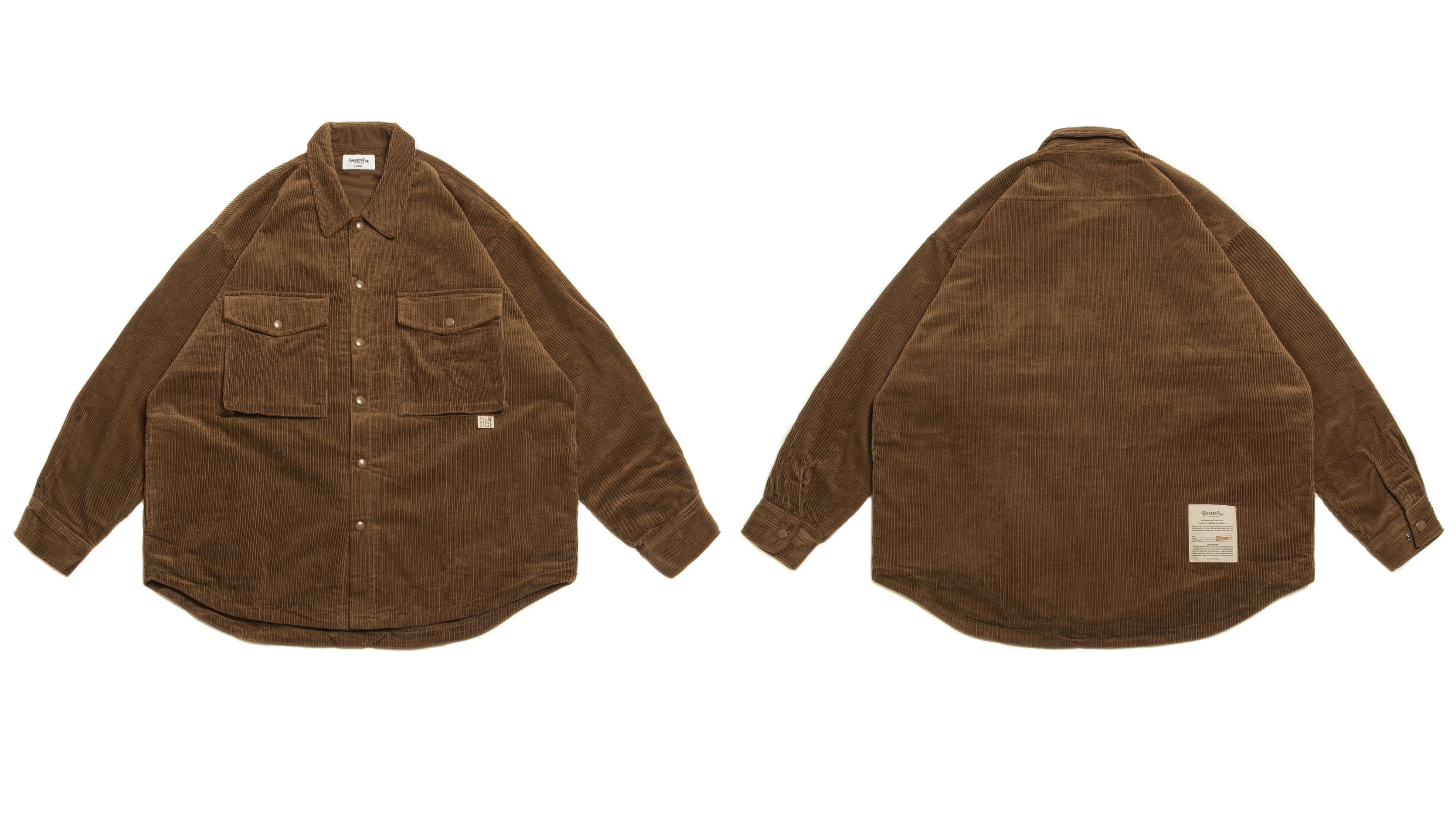 PERSEVERE 秋冬襯衫式夾克外套全新發售,使用手感厚實的粗燈芯絨面料製作,搭配同色高密度材質的全內裡,讓保暖與舒適度大幅提升;版型以寬鬆落肩作為設定,並配置半立體雙口袋及隱藏式手插袋,搭配品牌米白視覺織標豐富細節;在冬天內搭大學或連帽T恤,除了穿搭出多層次風格,同時也兼具了保暖與造型感,是一款非常合適用來搭配的夾克外套類單品。