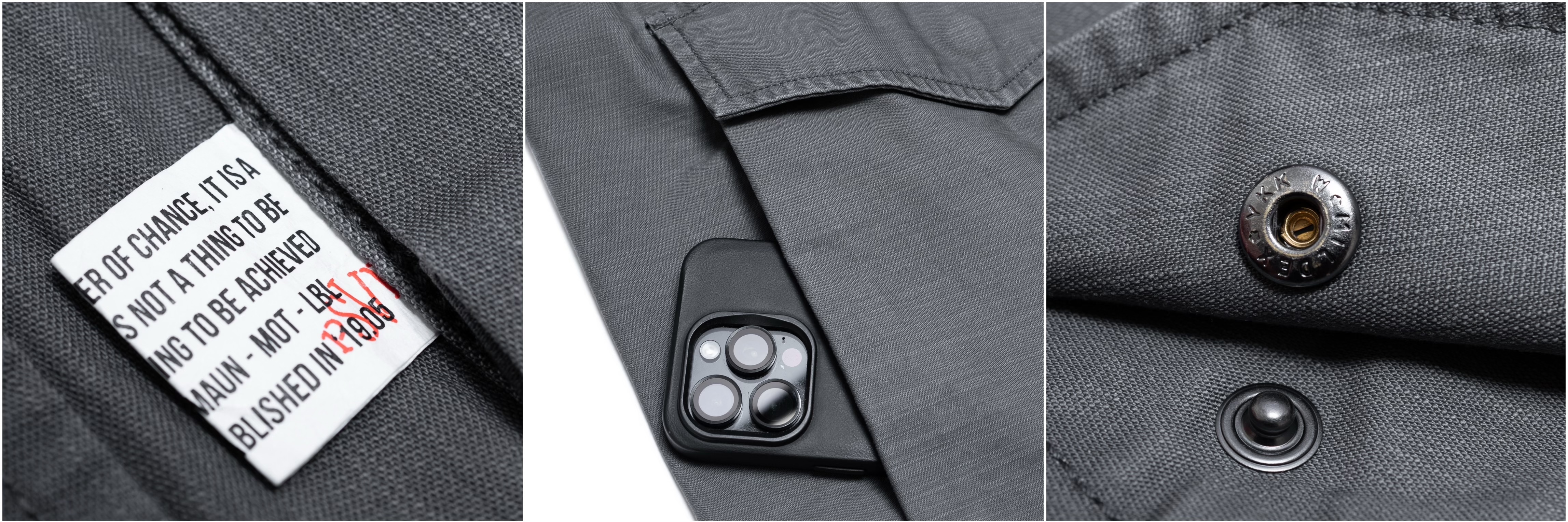 ● 細節配置白色 Tyvek®視覺織標、橘色撞色拉繩,搭配日製YKK四合釦,增添質感與耐用度。
