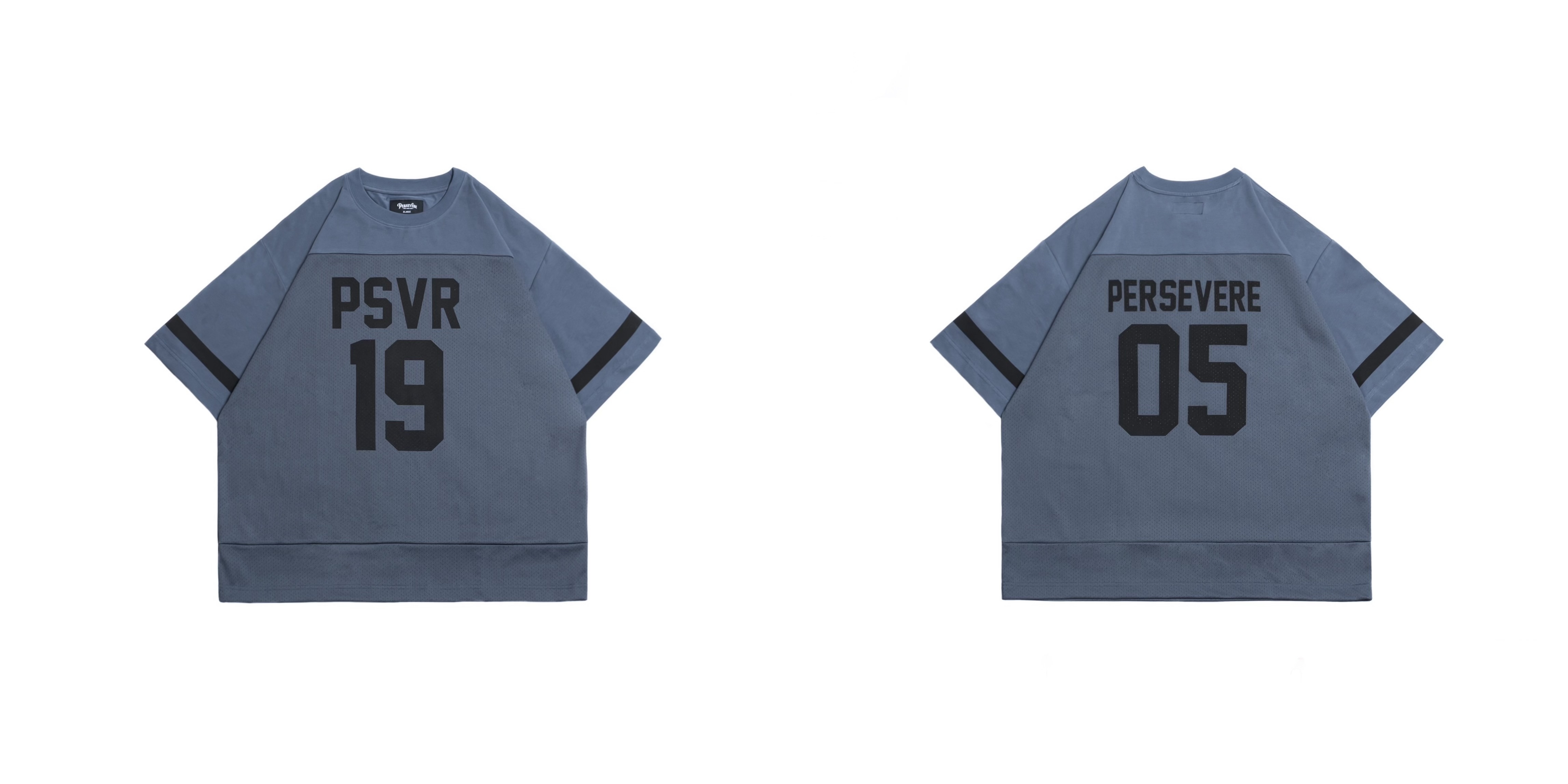 PERSEVERE 首發拼接球衣短袖T恤全新發售,選用高密度網眼材質,拼接SORONA®涼感棉質混紡布料製作,營造豐富的視覺層次,面料兼具透氣與涼爽等機能特性,帶來清爽舒適的穿著體驗。版型以寬鬆落肩為輪廓設定,搭配品牌字樣印刷設計,進一步提升整體辨識度。細節方面,領口採用棉質羅紋設計,增添日常著用時的舒適感。