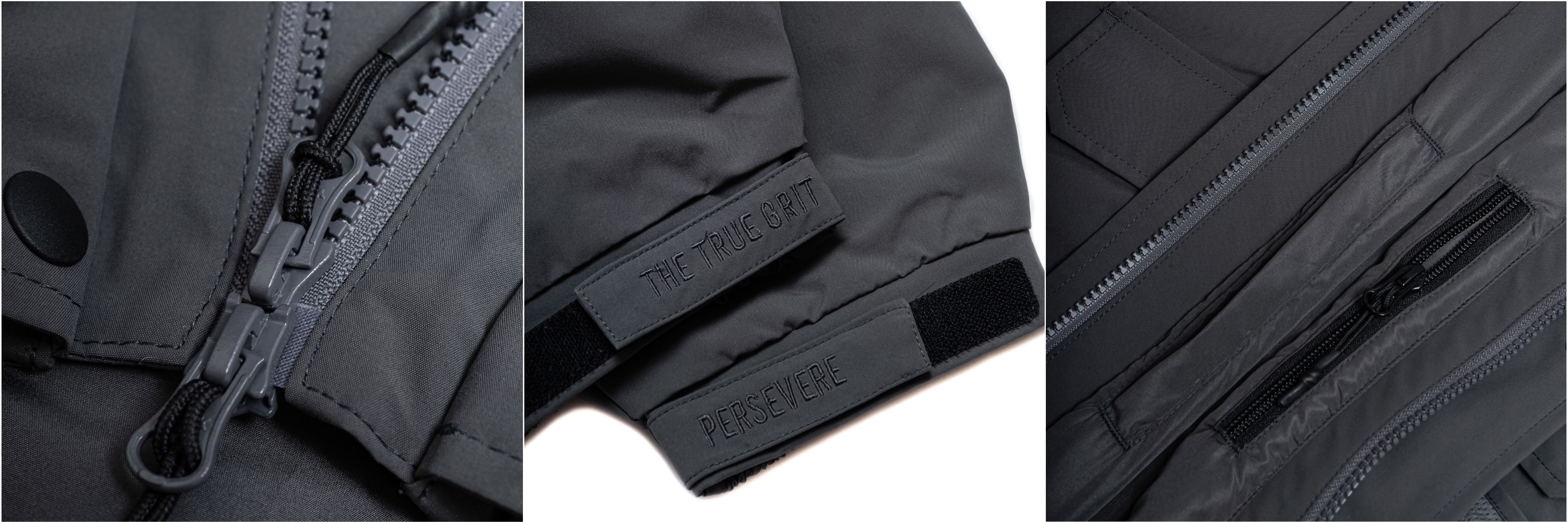 ● 連帽與下擺的調節扣具設定,兩層式擋風片門襟設計,搭配袖口高強度不粘毛魔鬼氈,大幅提升整體抗風強度。
