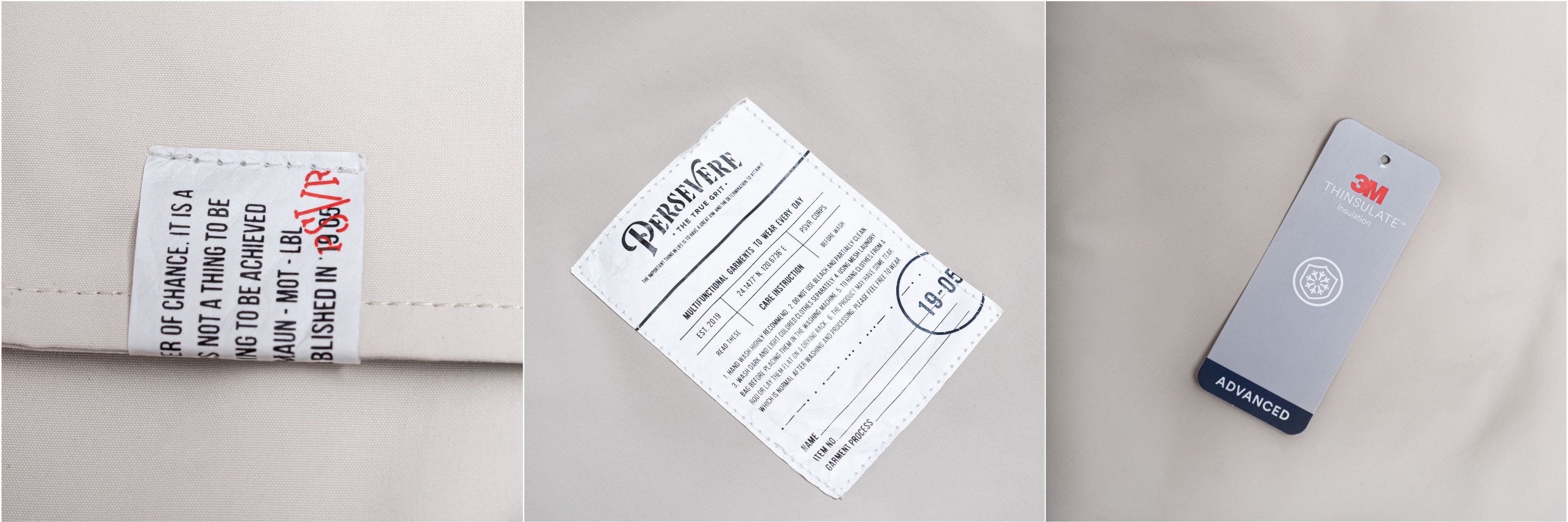 ● 內裡選配 3M™ Thinsulate™ 新雪麗™ 保溫棉,輕薄不厚重,有極佳的保暖效果,能有效留住身體熱能,並保持良好透氣度。