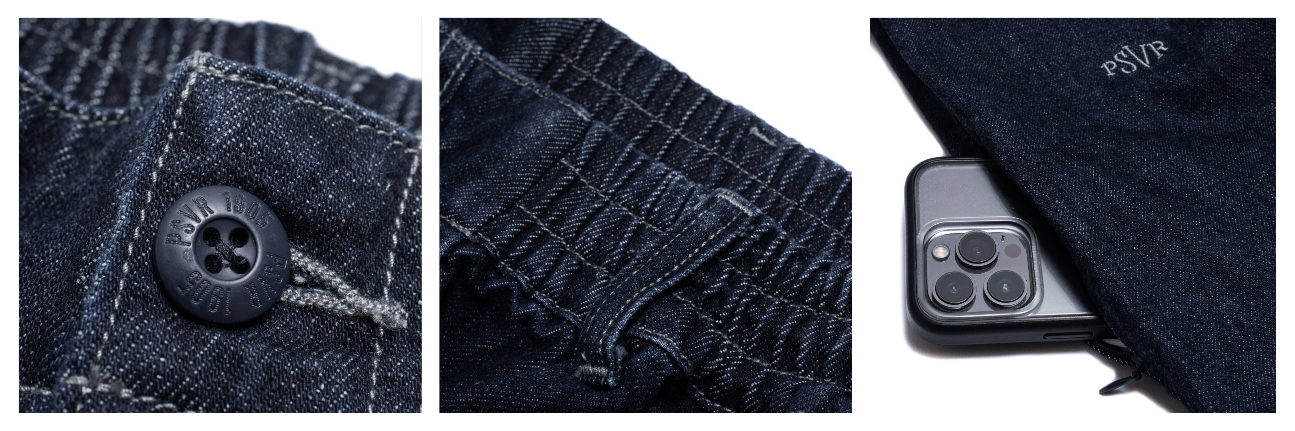 ● 褲款正面增加 PSVR 字樣電繡、左後小袋搭配米白圖樣織標,提升細節質感與注目度。