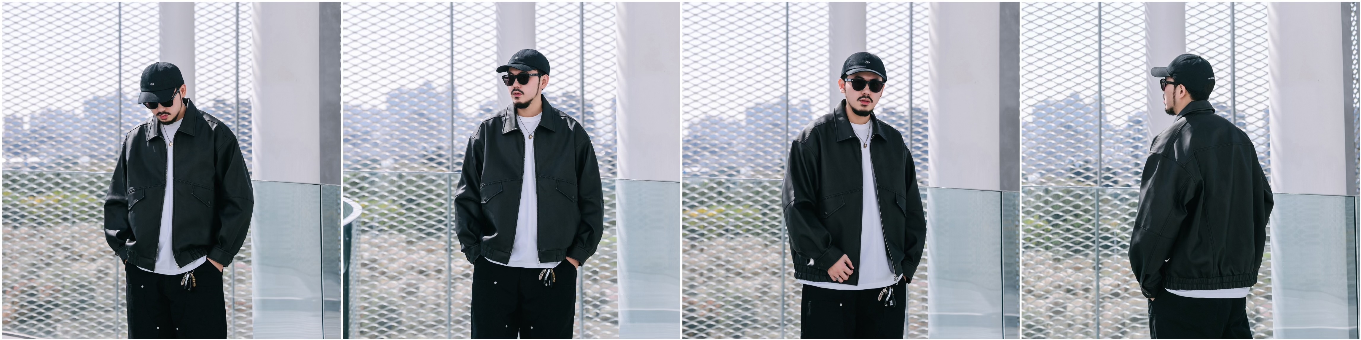 城市休閒系列套組 – 品牌首發消光水洗皮衣全新發售!選用具天然紋理感的超纖消光人工皮革製作,透過水洗工序處理,讓車縫邊緣自然呈現復古磨邊質感,版型則以寬鬆落肩輪廓設定,同時配置四個實用口袋,大幅提升日常收納機能。