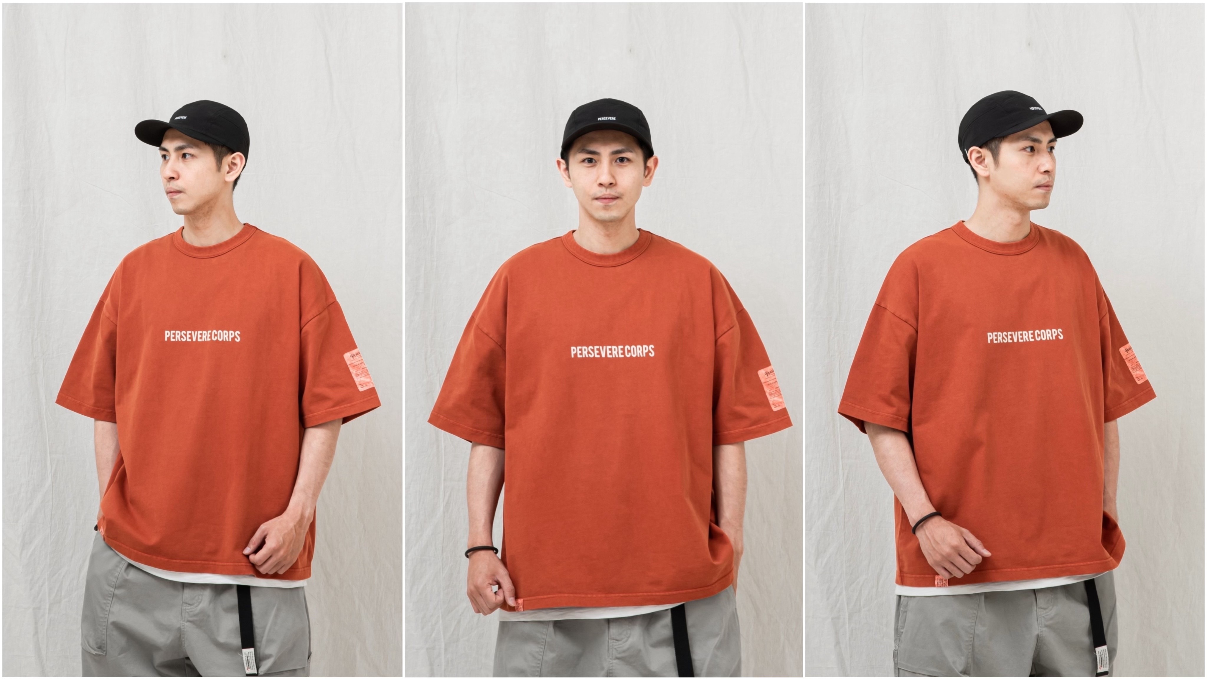 PERSEVERE 品牌標誌水洗T恤全新發售,採用舒適的高磅數雙股紗純棉材質製作,重設版型比例,維持寬鬆落肩輪廓,增加著用時的俐落感,並以 Pigment Dyeing 進行水洗工序,讓面料呈現自然的水洗紋路,搭配領口加厚羅紋包覆的外包式車縫固定細節,避免領圍變形並提升耐穿度,以延長衣物的穿著壽命。
