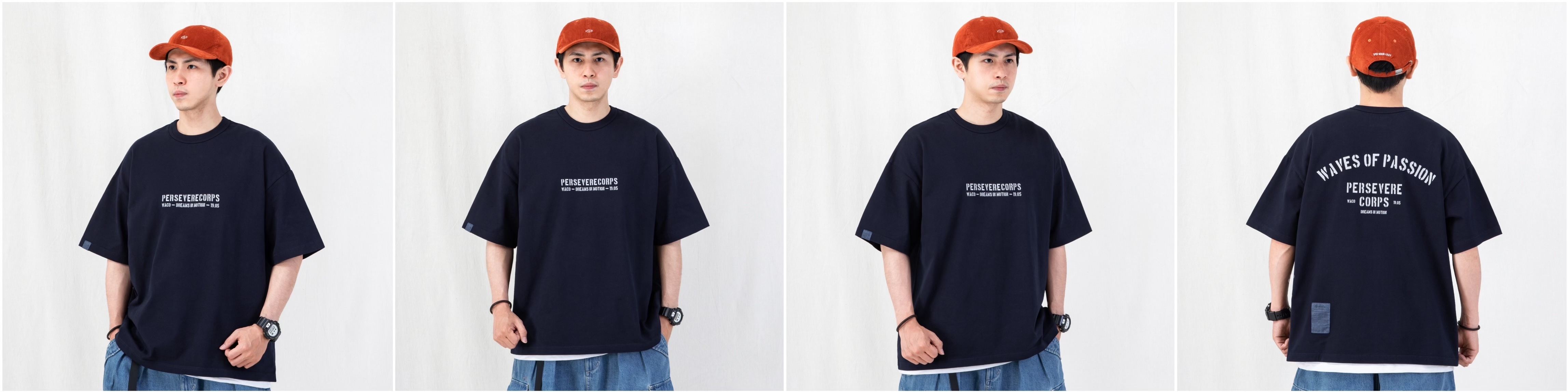 PERSEVERE 標語圖樣水洗T恤全新發售,採用舒適的高磅數雙股紗材質製作,經典寬鬆落肩版型設定,並以 Pigment Dyeing 進行水洗程序,讓面料呈現自然的色落質感,搭配領口加厚羅紋包覆的外包式車縫固定細節,避免領圍變形並提升耐穿度,以延長衣物的穿著壽命。