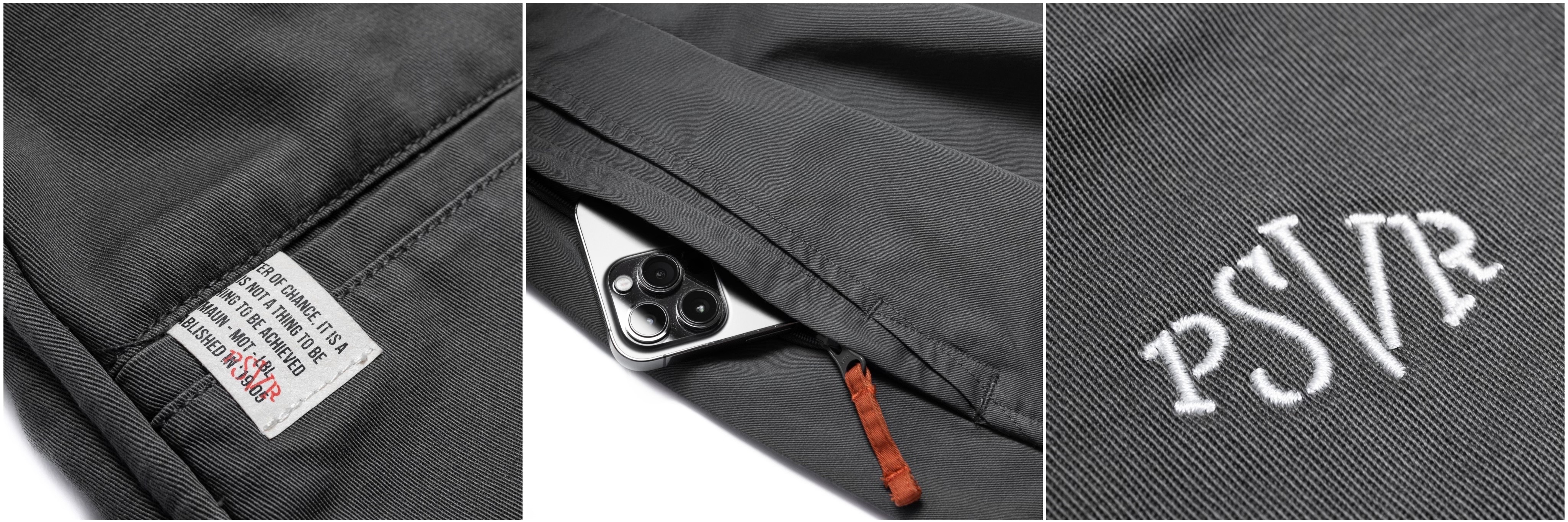 ● 脇邊拉鍊口袋設計配置橘色拉繩,提升使用手感與便利性。