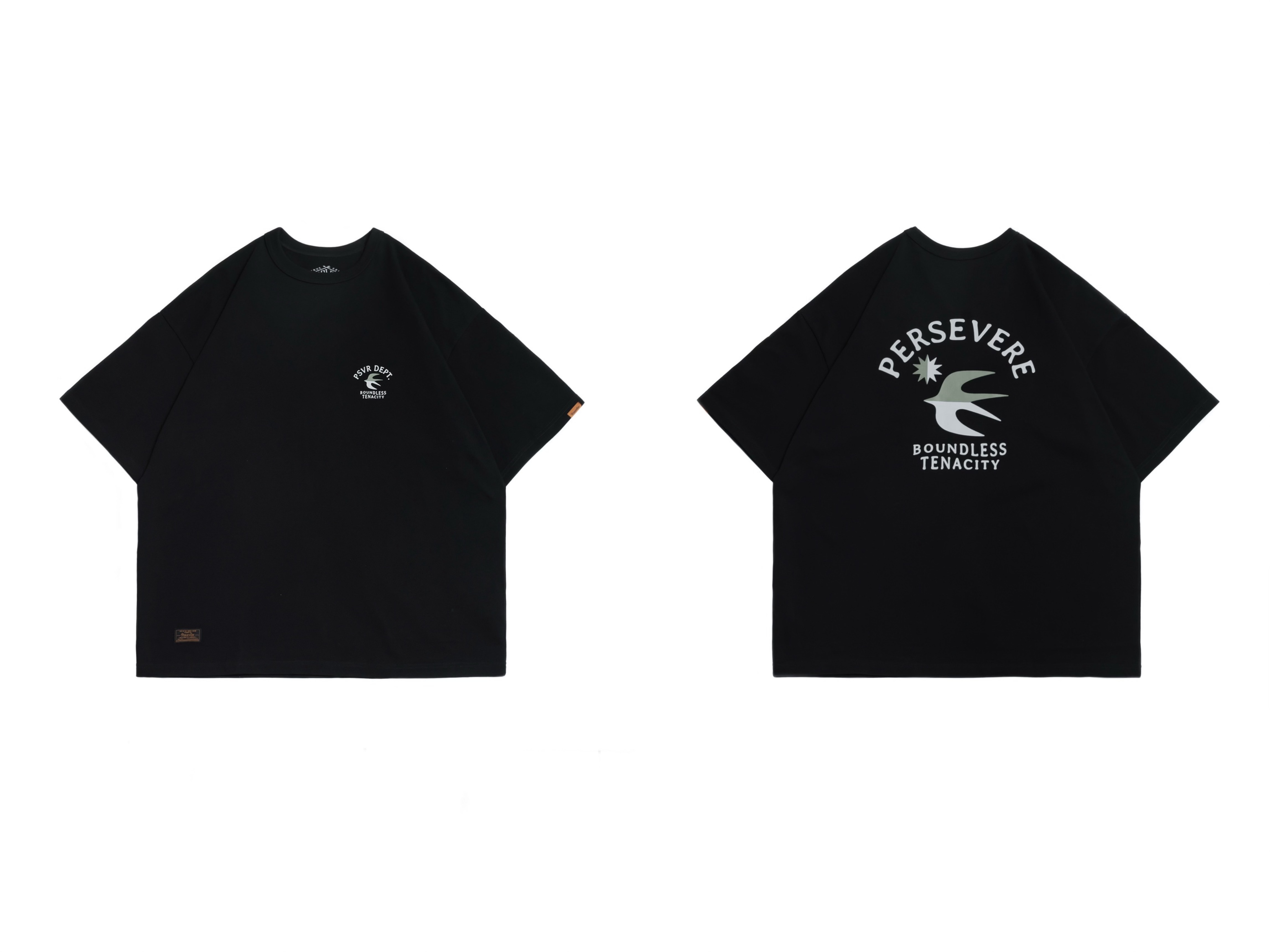 PERSEVERE 飛燕圖像T恤全新發售,選用高磅雙股紗純棉布料製作,搭配復古手繪風格的雙色飛燕圖像。製程方面,面料採用水洗預縮工序,大幅減低衣物縮水窘境,選用加厚羅紋包覆領口,達到防止變形與提升耐穿度,版型則採用寬鬆落肩剪裁作為設定,單穿或混搭都相當合適。