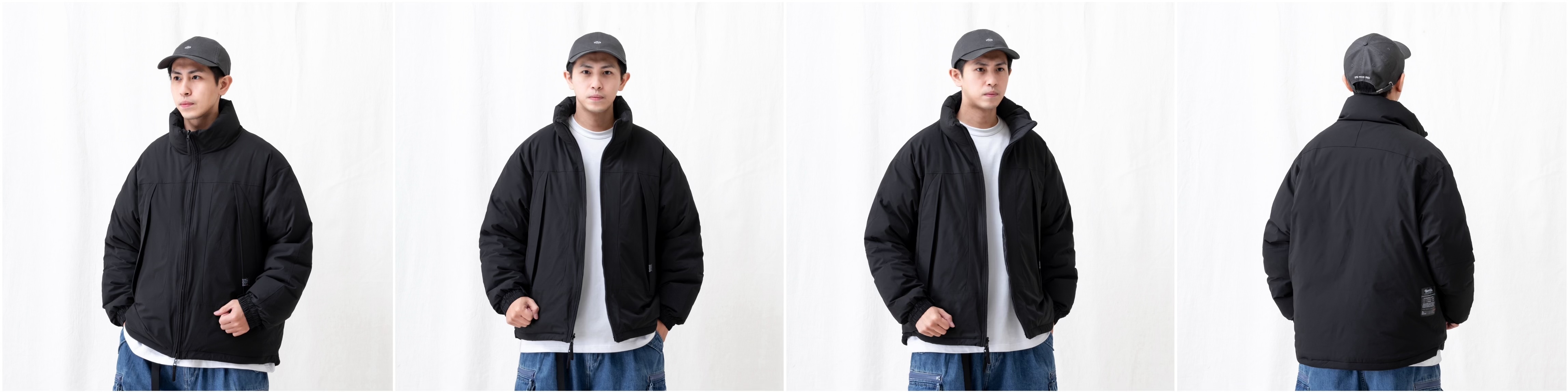 ● 雙面著用設定搭配雙向拉鍊細節,可依穿著需求調整外套造型輪廓,提供更高的穿搭靈活性及實用性。