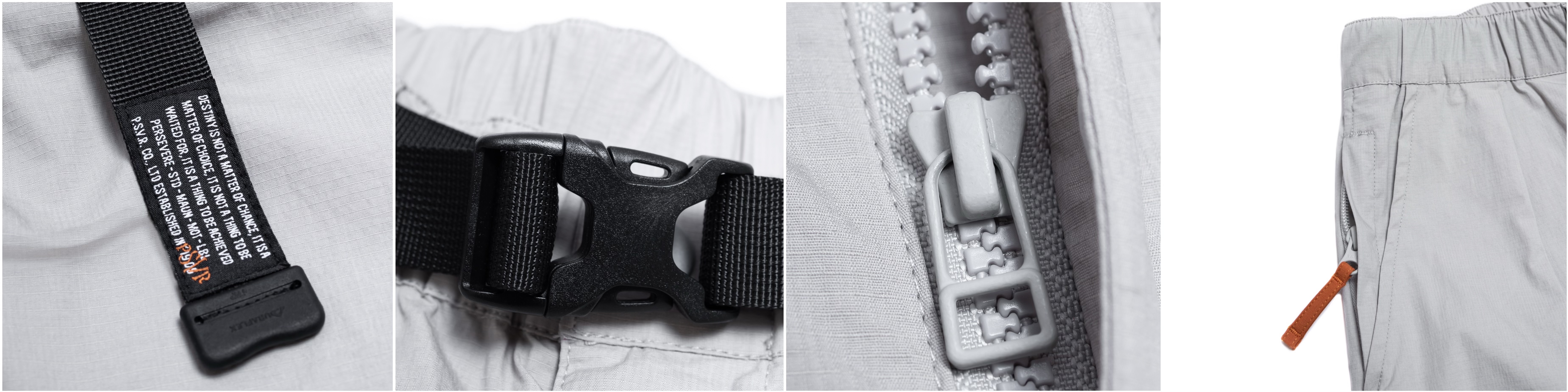 ● 腰圍以全鬆緊帶為基礎,搭配美國DURAFLEX尾夾的可拆式3M腰帶設計,滿足多元尺寸需求,同時增添穿著便利性。