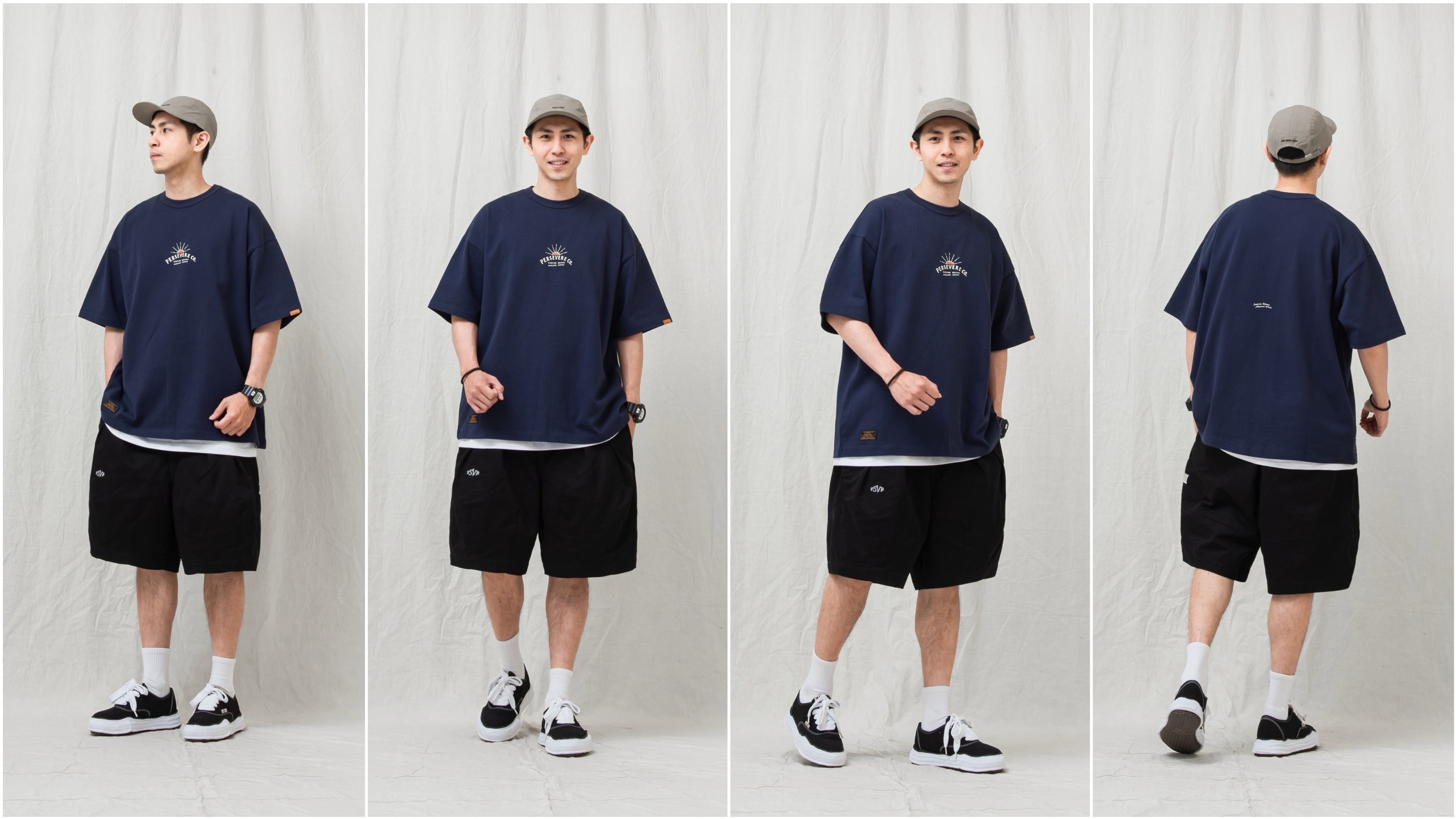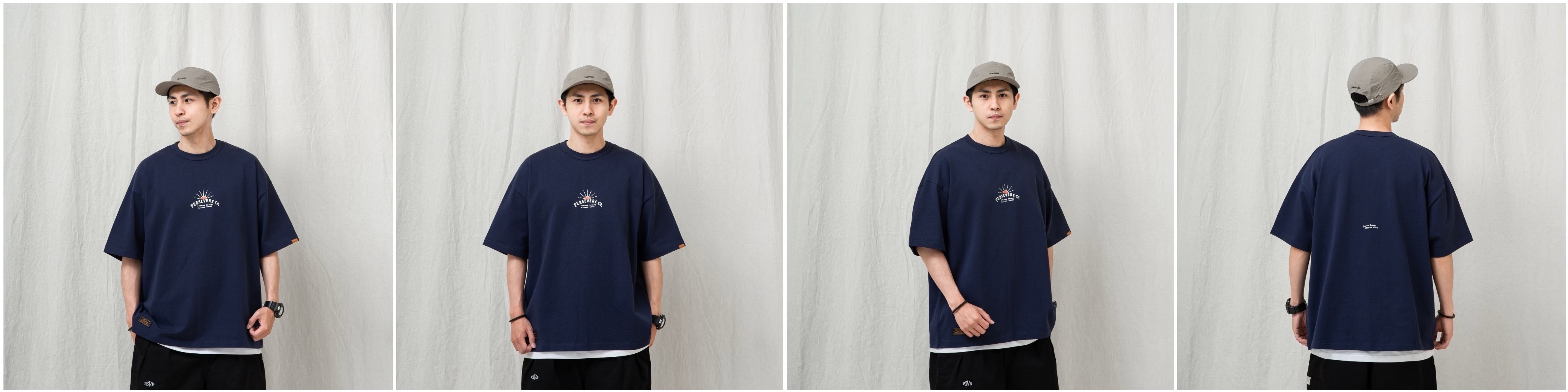 夏季別注系列第一款,職人畫師以品牌 LOGO 圖樣搭配冉冉升起的太陽意象,並融入本季核心概念標語,搭配高磅數的雙股紗面料,提供舒適著用感受,工序方面,採用二次水洗預縮製程,大幅減低衣物縮水窘境,選用加厚羅紋包覆領口,達到防止變形與提升耐穿度,版型則採用寬鬆落肩剪裁作為設定,單穿或混搭都相當合適。