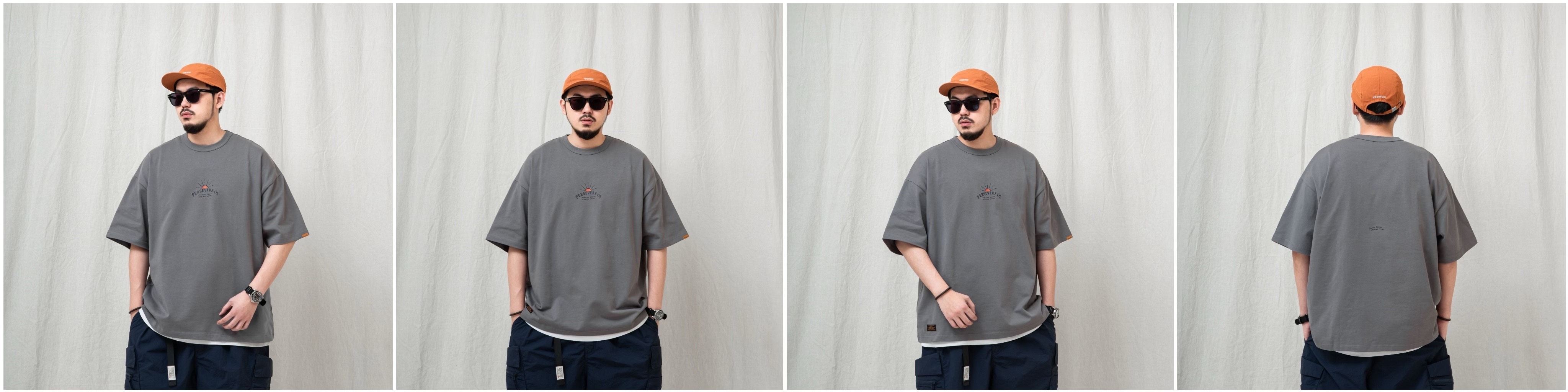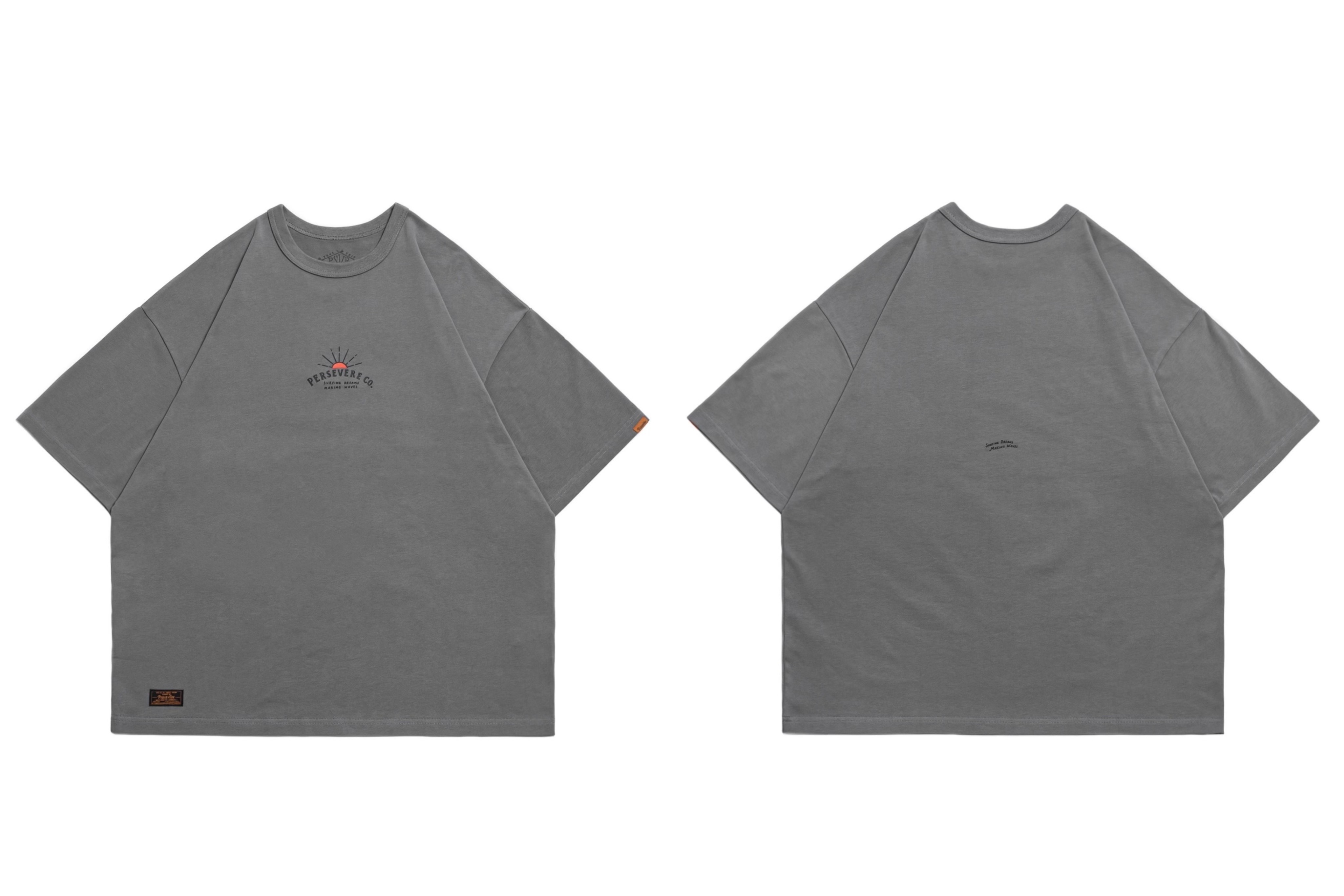 夏季別注系列第一款,職人畫師以品牌 LOGO 圖樣搭配冉冉升起的太陽意象,並融入本季核心概念標語,搭配高磅數的雙股紗面料,提供舒適著用感受,工序方面,採用二次水洗預縮製程,大幅減低衣物縮水窘境,選用加厚羅紋包覆領口,達到防止變形與提升耐穿度,版型則採用寬鬆落肩剪裁作為設定,單穿或混搭都相當合適。