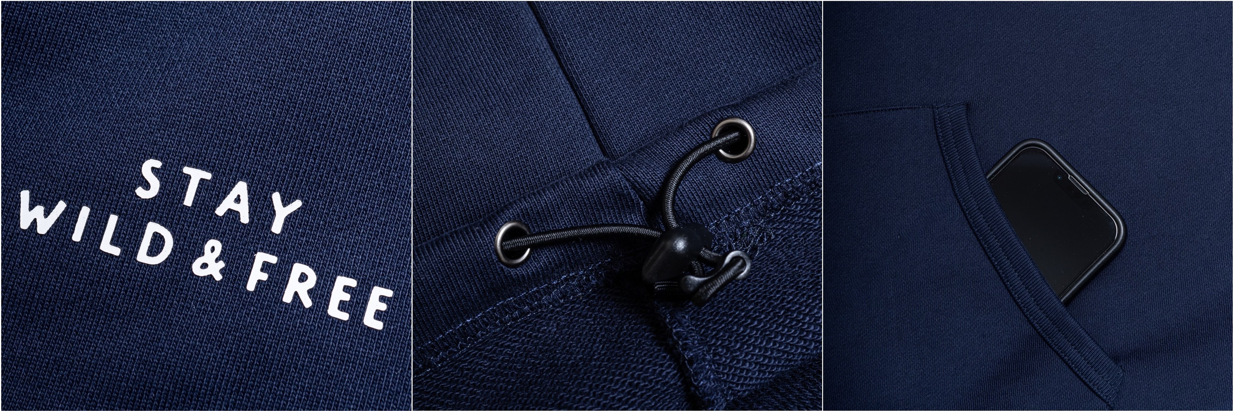 用來象徵堅持的核心理念,如旭日高掛持續發散正向能量,透過 STAY WILD& FREE 呼應整體概念;衣版部分,使用品牌經典特殊落肩版型,並挑選厚魚鱗棉布面料製作,搭配下襬內側抽繩扣具細節,滿足不同造型變化,是一款單穿外搭都相當合適的必備經典單品。