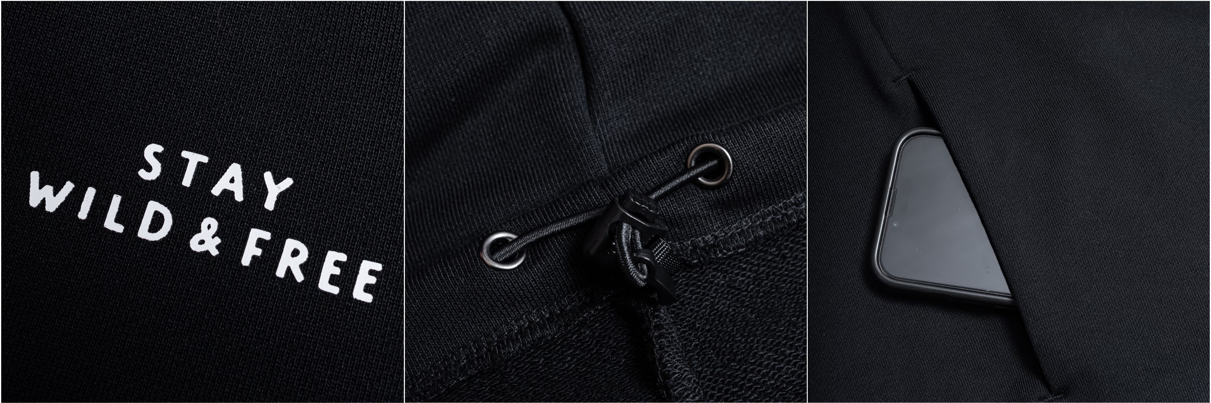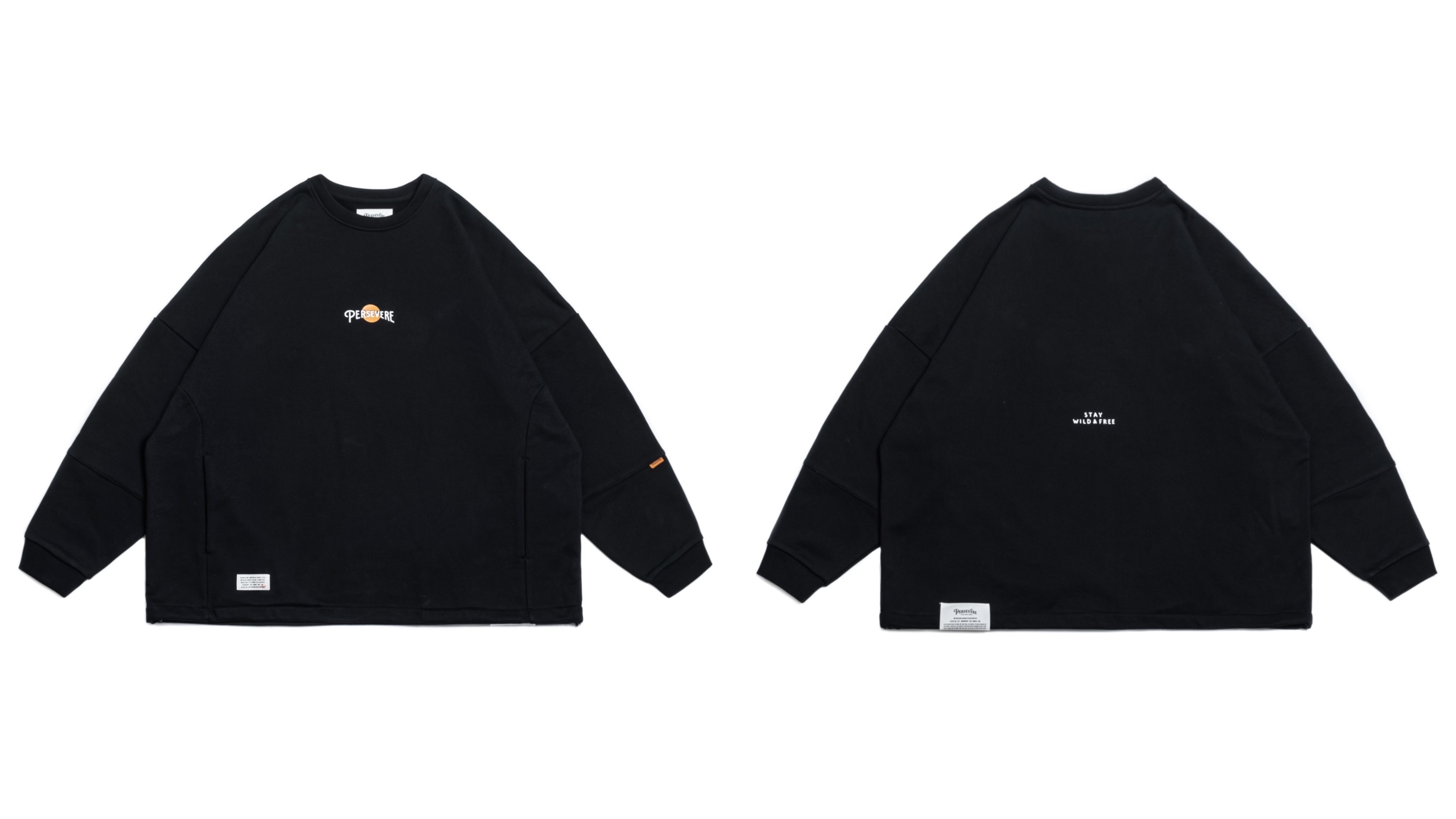 用來象徵堅持的核心理念,如旭日高掛持續發散正向能量,透過 STAY WILD& FREE 呼應整體概念;衣版部分,使用品牌經典特殊落肩版型,並挑選厚魚鱗棉布面料製作,搭配下襬內側抽繩扣具細節,滿足不同造型變化,是一款單穿外搭都相當合適的必備經典單品。