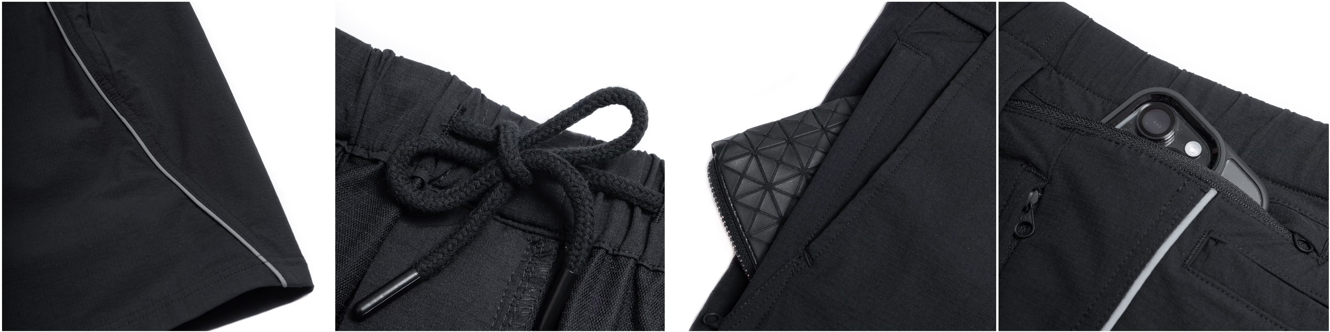 ● 褲側二個手插口袋、四個拉鏈口袋搭配背後二個立式口袋配置,提供強大的收納實用性。