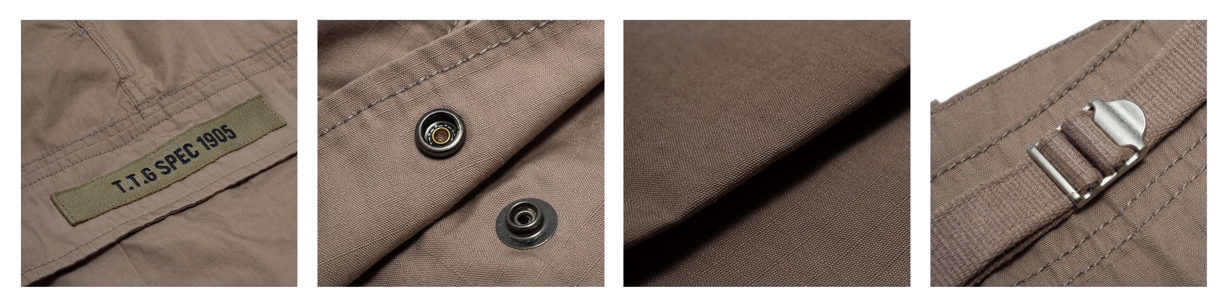 PERSEVERE 2021 年度重磅單品,T.T.G.第三代軍褲升級版本全新發售,品牌成立以來首次使用最高等級的 - 日本進口 RIP-STOP 面料進行製作,以 70% COTTON + 30% NYLON 混紡而成並加上塗層加工,輕量化的同時擁有高密度、高強度、耐磨、透氣、抗風、抗撕裂..等特性,讓著用時的立體度變得相當出色,並透過水洗工序讓布料呈現些微水洗與細緻的光澤感。