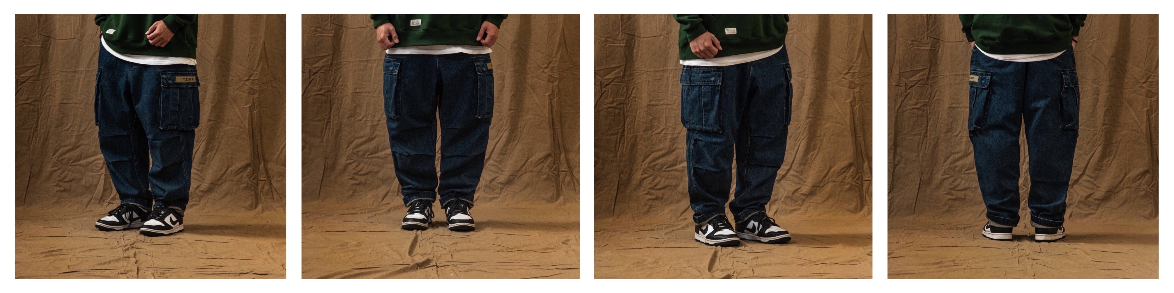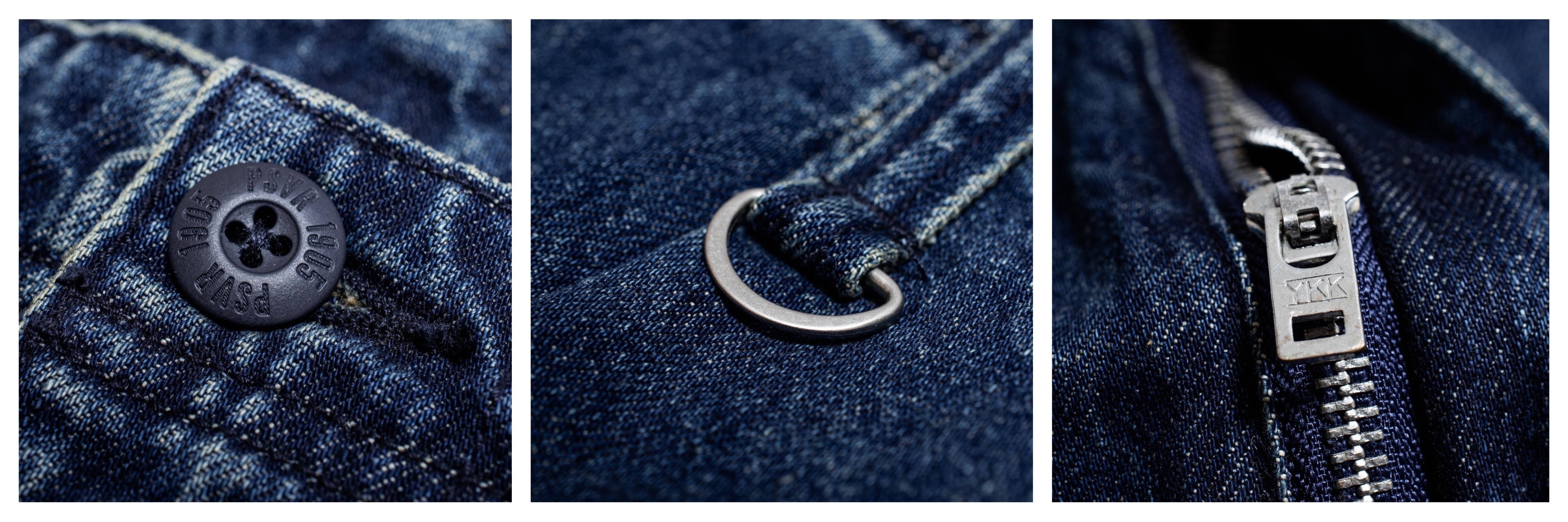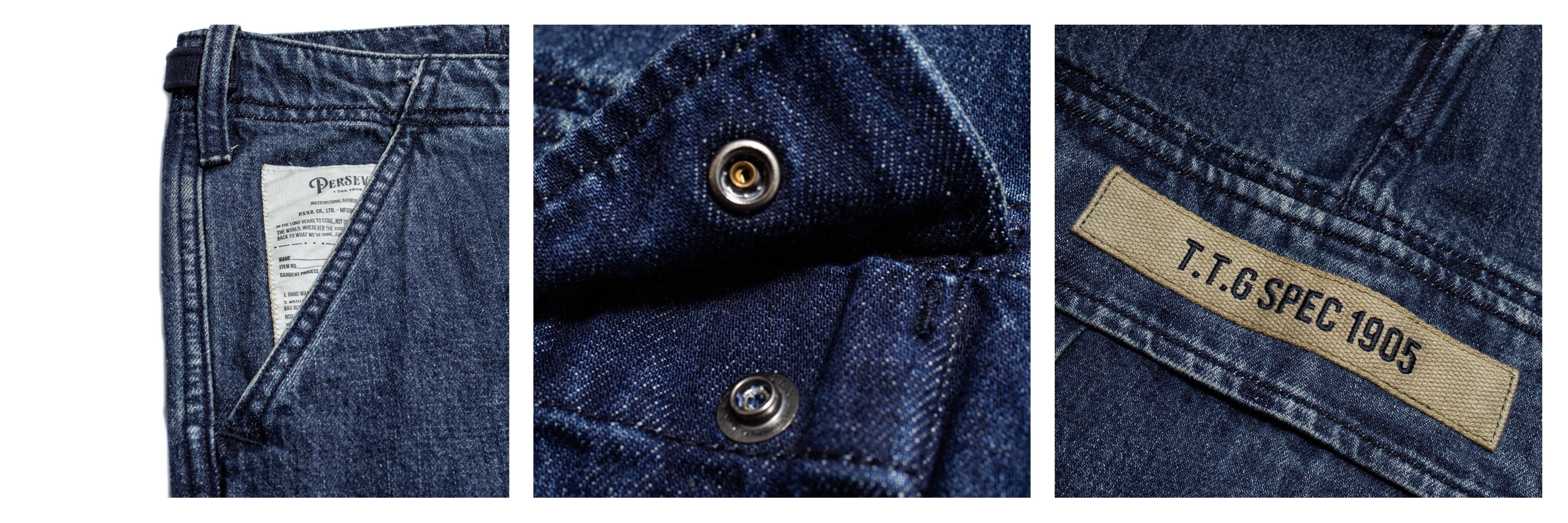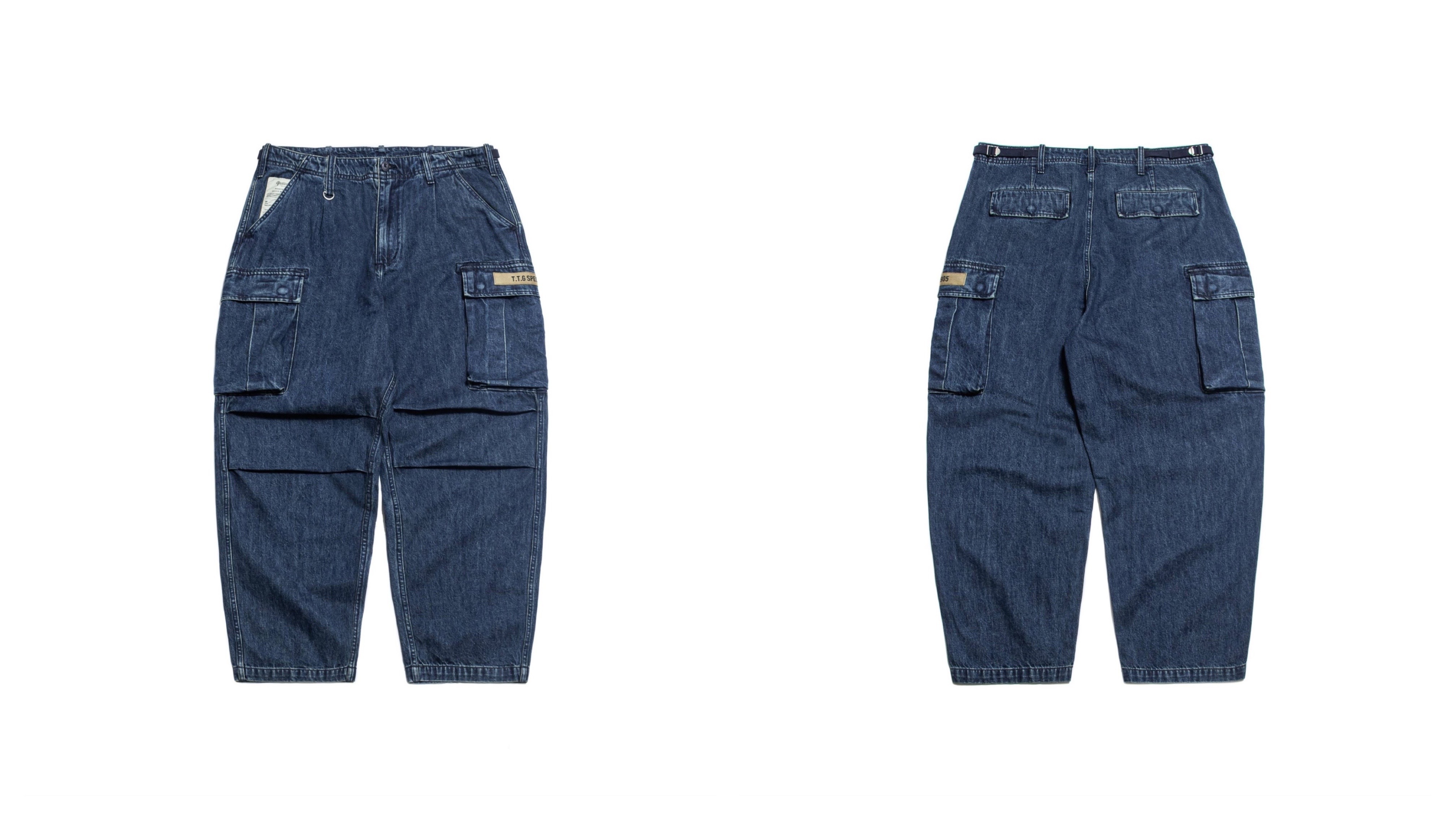 以第三代 T.T.G. 軍褲為基礎,牛仔色挑選13OZ丹寧面料製作,透過酵石水洗加工,呈現自然的著用色落感;另外煙灰色挑選厚薄適中,布性挺拔紮實的日本十字竹節面料,進行染製作業,搭配後加工石洗工序,呈現自然洗舊感的獨特煙灰色調。