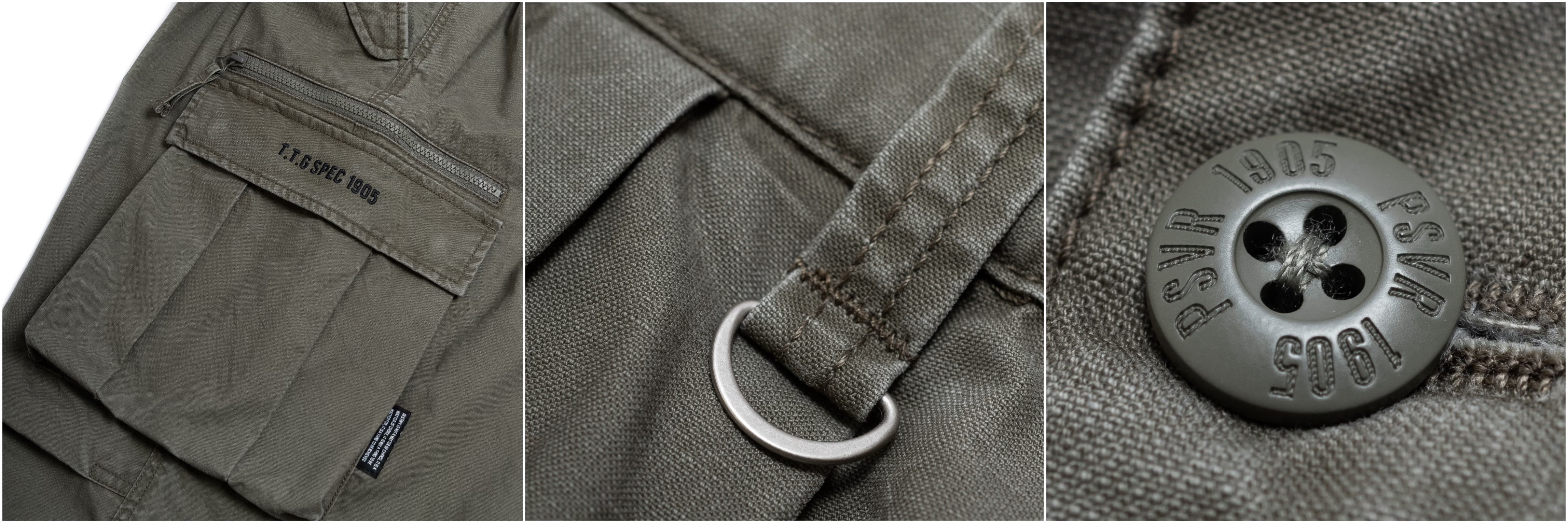 ● 精實電繡工法呈現 T. T. G. 銘牌與 Tyvek®視覺織標、黑色織標搭配,詮釋第六代 T. T. G. 軍褲新樣貌。