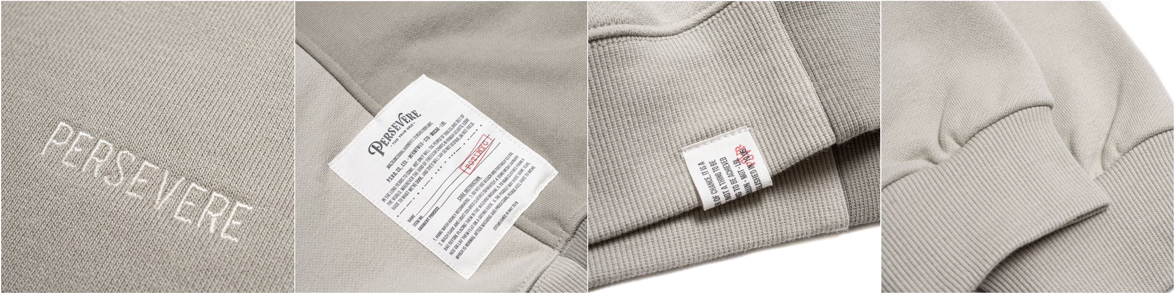 ● 胸前電繡 PERSEVERE LOGO 細節,搭配衣襬、後背的米白視覺織標,提升細節質感。